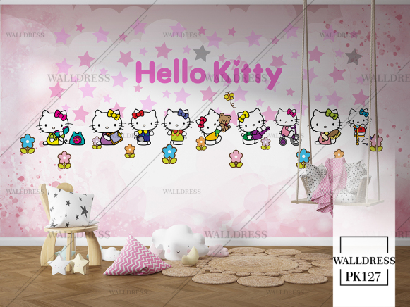 پوستر دیواریطرح هلو کیتی صورتی مخصوص اتاق دختر