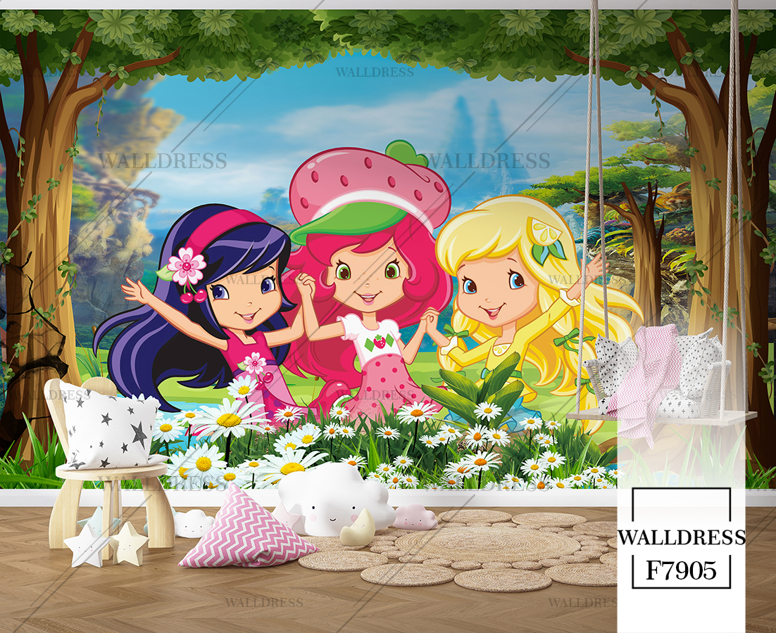 پوستر دیواری طرح دختر توتت فرنگی مخصوص اتاق کودک