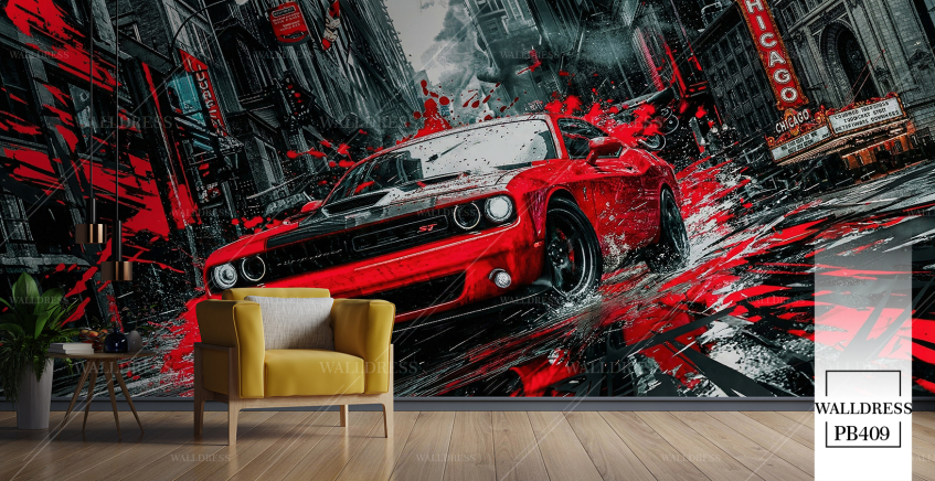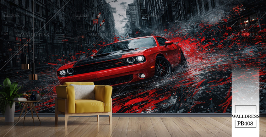 پوستر دیواری ماشین دوج چلنجر قرمز
