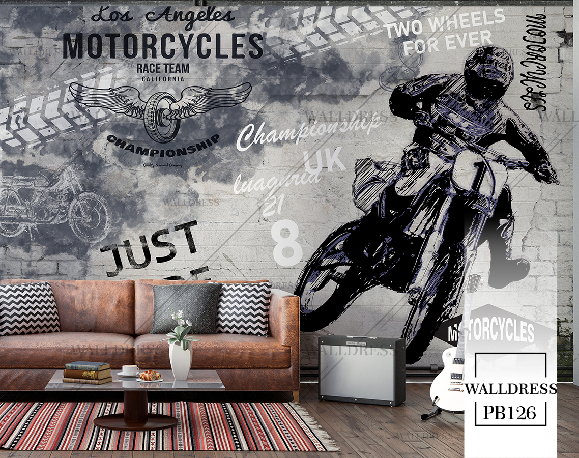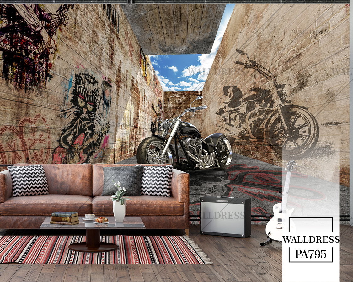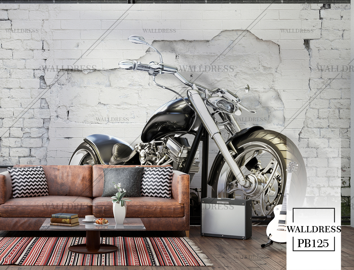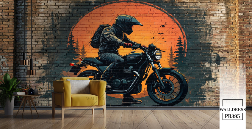 پوستر دیواری موتور سوار دیوار آجری