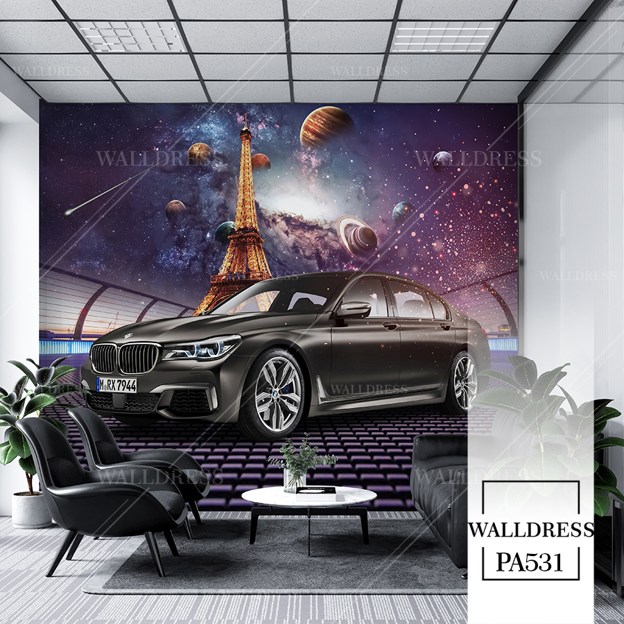 پوستر دیواری ماشین BMW کهکشانی برج ایفل