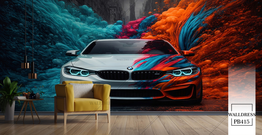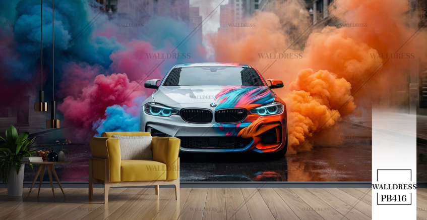 پوستر دیواری ماشین bmw دود رنگی