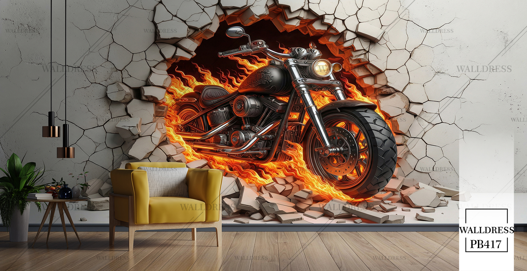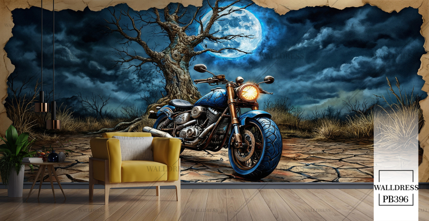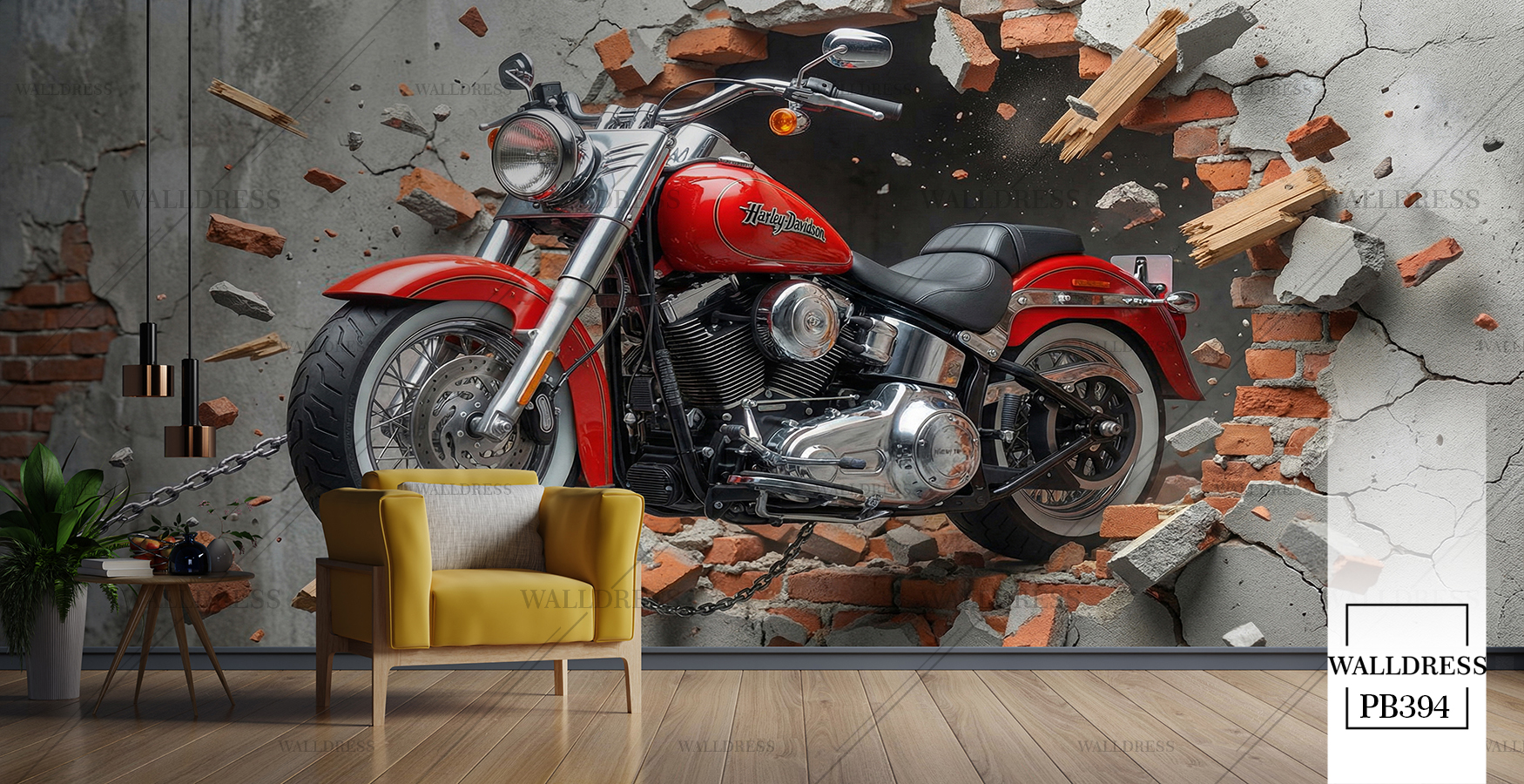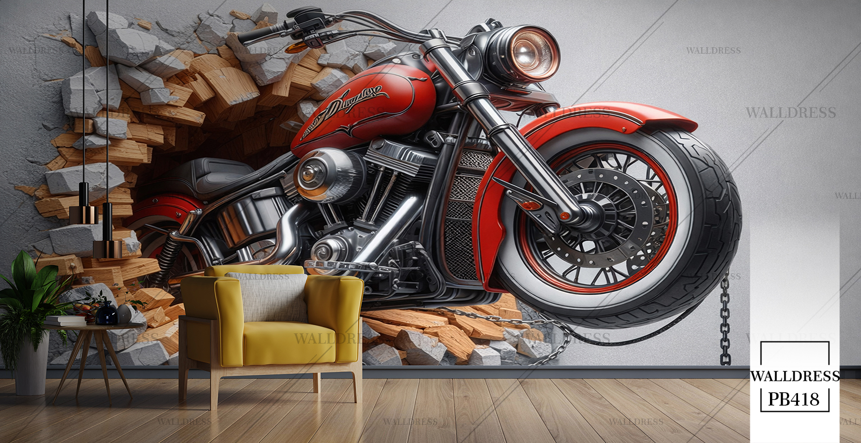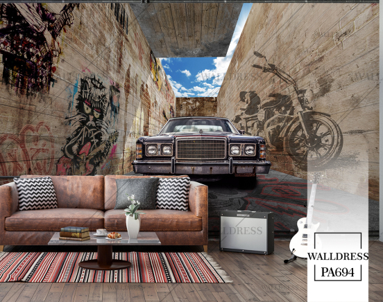 پوستر دیواری موتور قرمز دیوار شکسته یه بعدی
