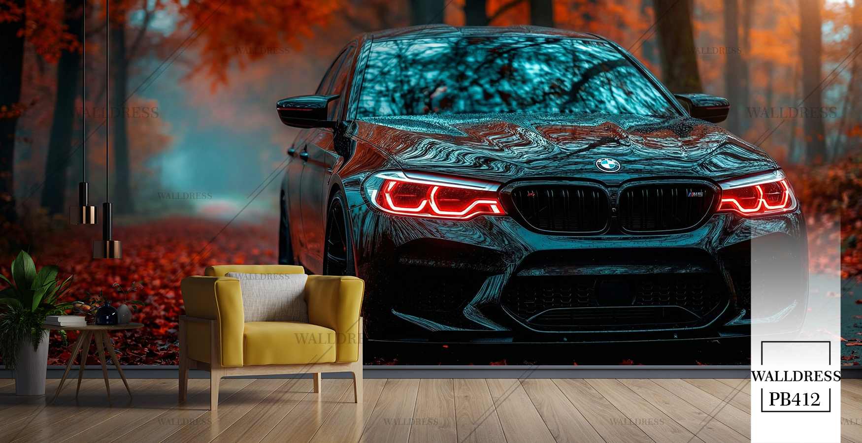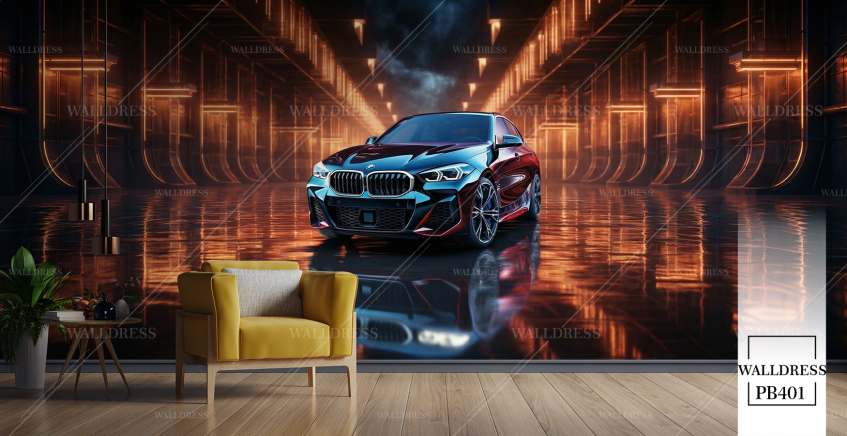 گوستر دیواری ماشین bmw دود نارجی آبی
