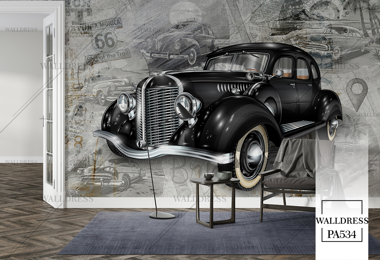 پوستر دیواری ماشین کلاسیک مشکی