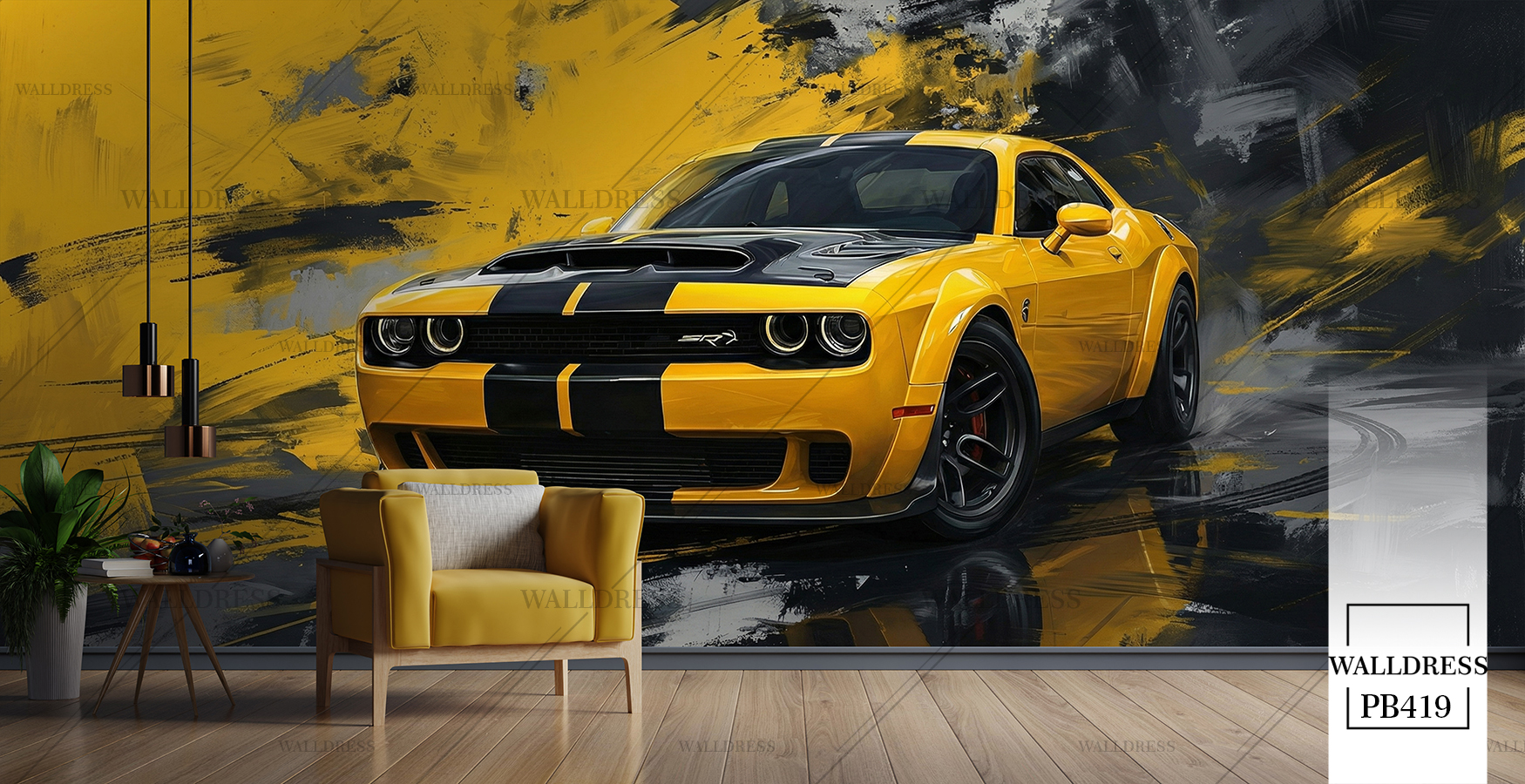 پوستر دیواری ماشین دوج چلنجر زرد