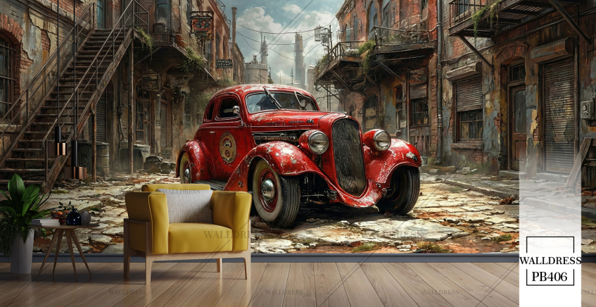 پوستر دیواری طرح ماشین کلاسیک قرمز