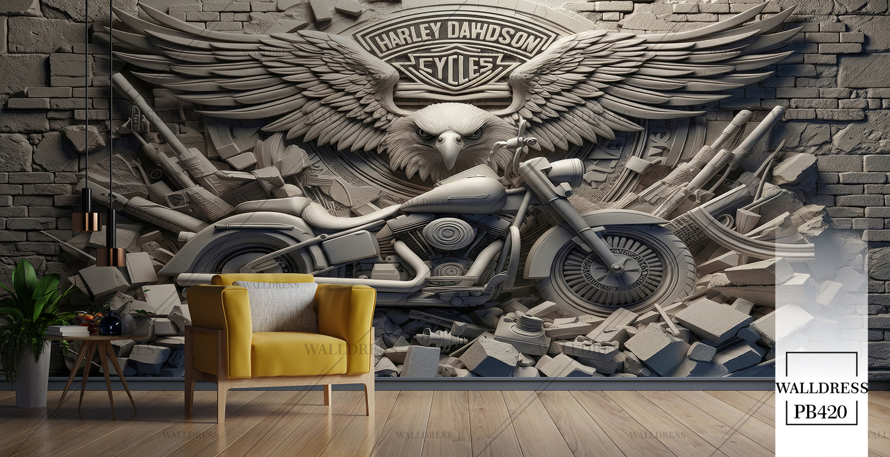 پوستر دیواری تصویر موتور آمرکایی عقاب گچی