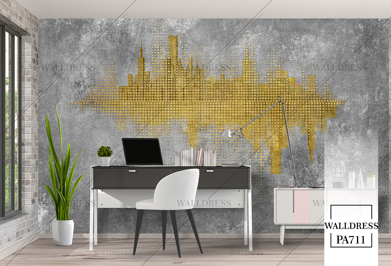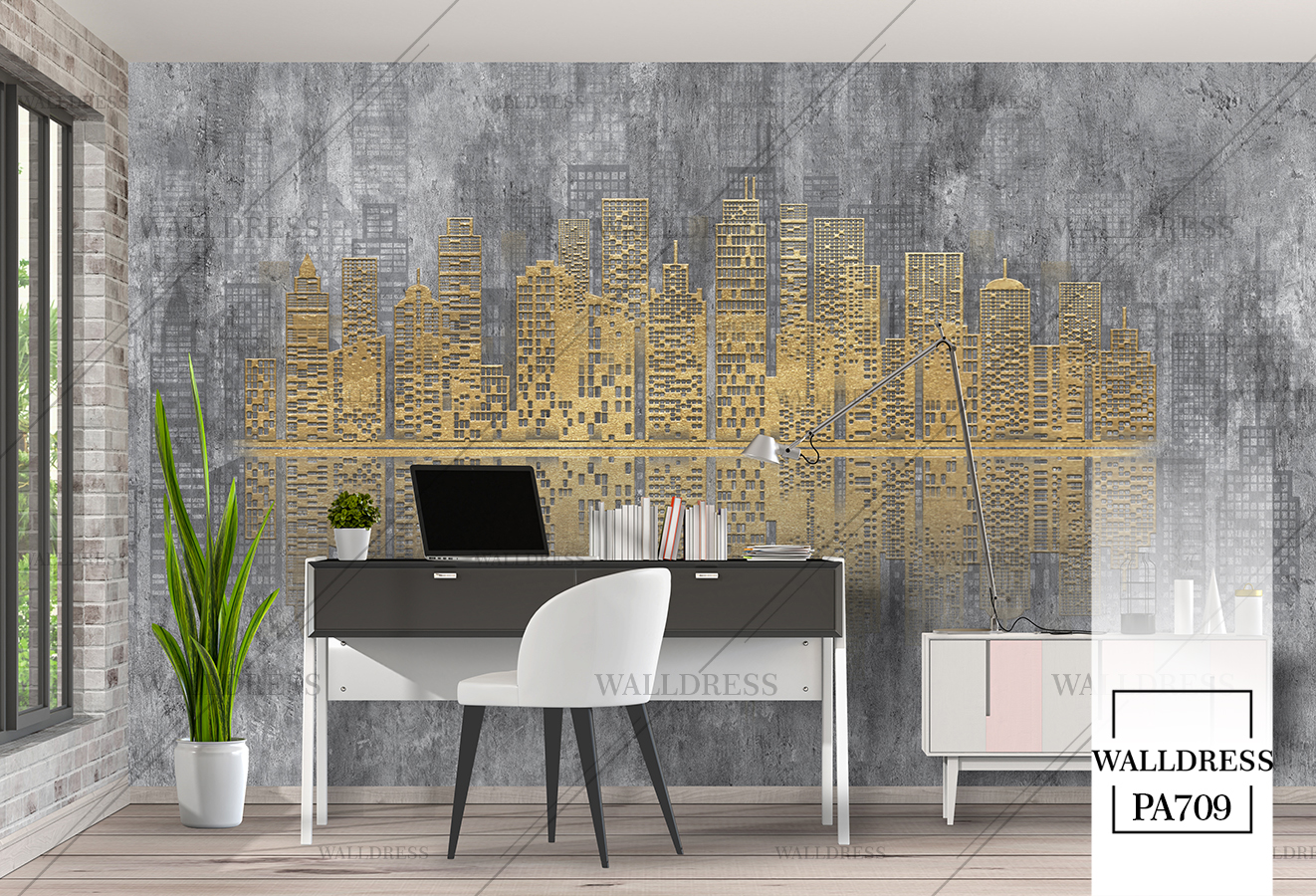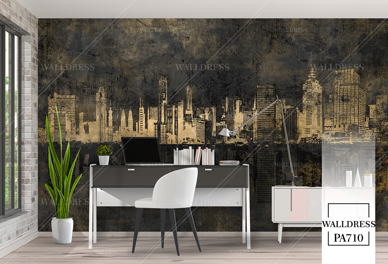 پوستر و کاغذ دیواری نمای شهر با منظره ساختمانی طراحی مدرن طبیعی و سورئال و خطوط معماری مناسب فضاهای امروزی و موسسات فروش املاک | منهتن طلایی