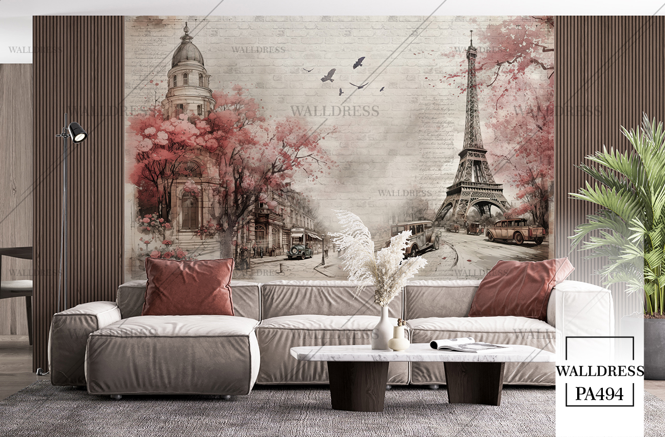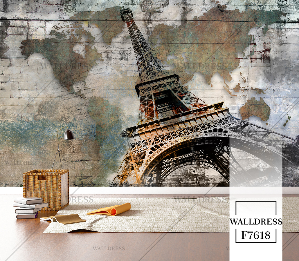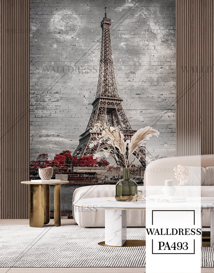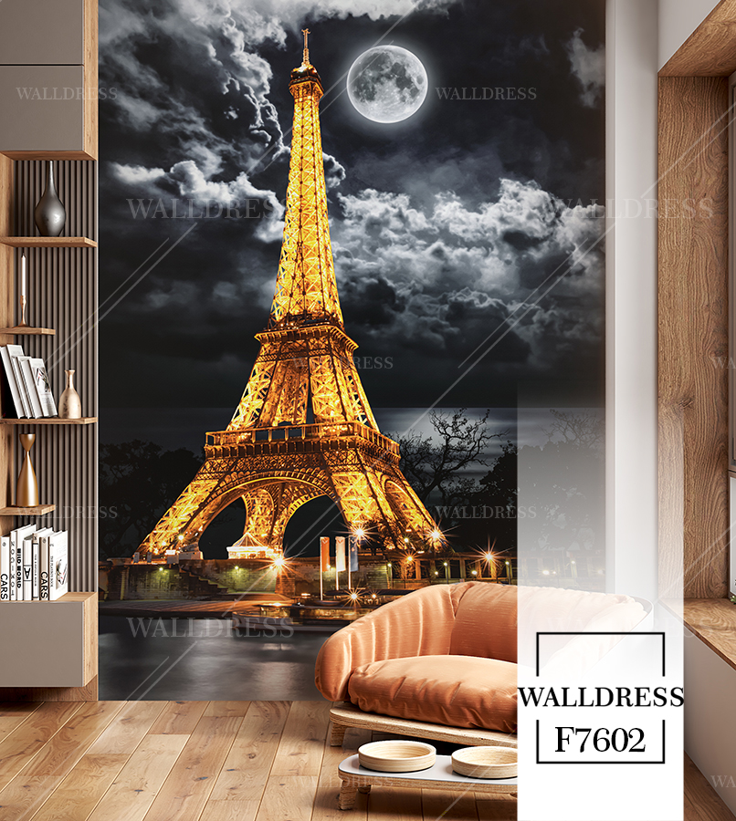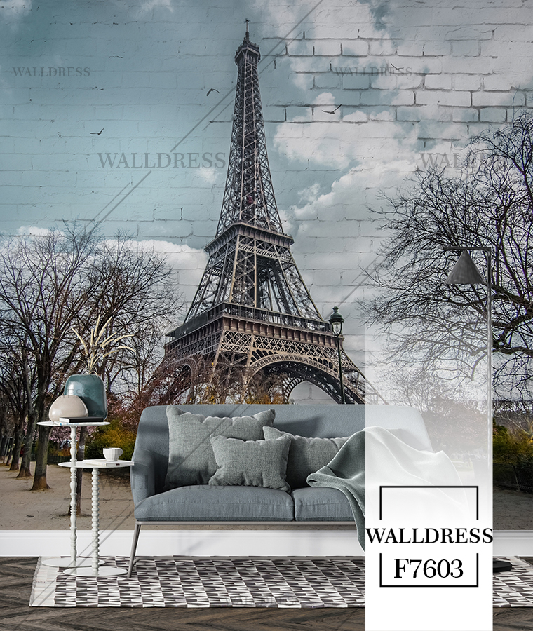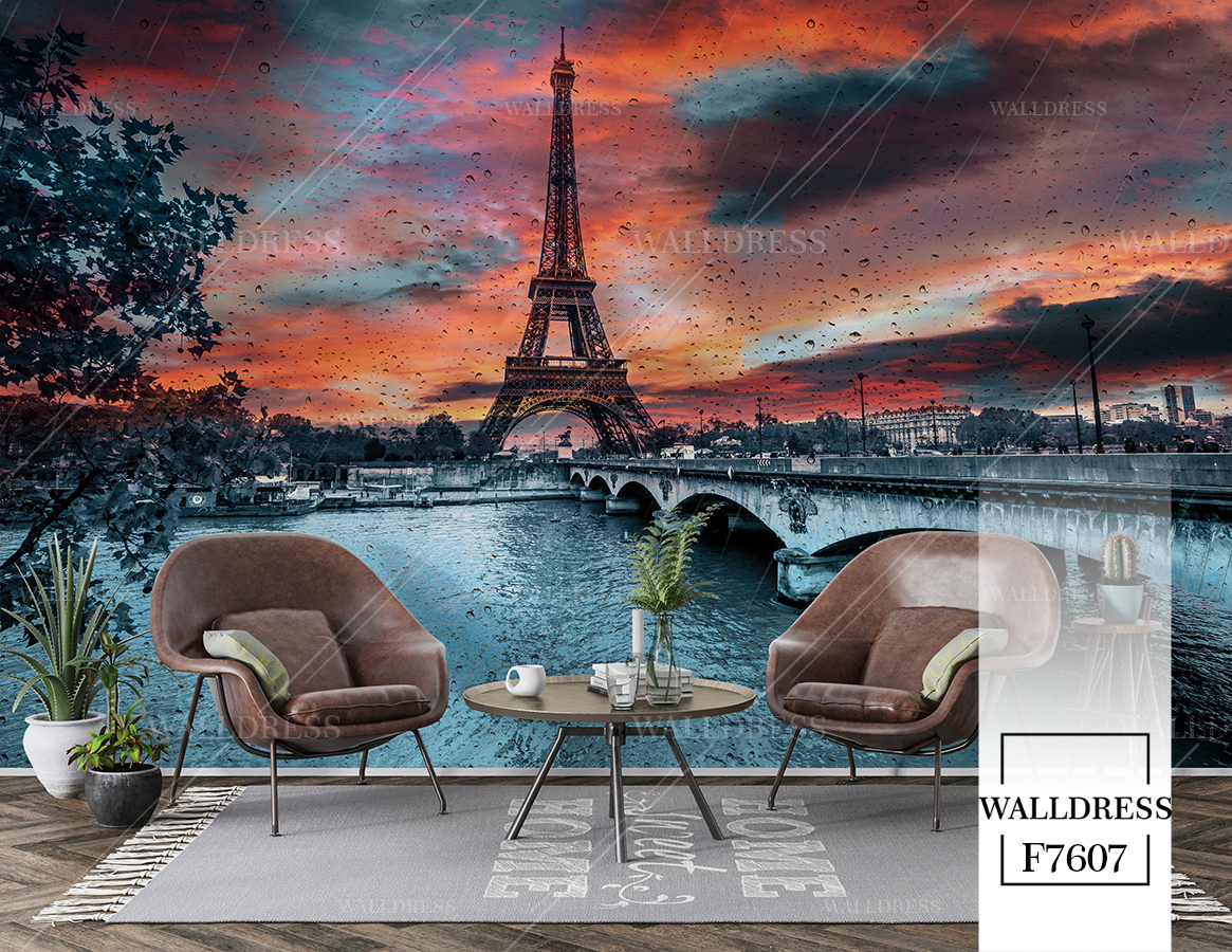 پوستر و کاغذ دیواری نمای شهر با منظره ساختمانی طراحی مدرن طبیعی و سورئال و خطوط معماری مناسب فضاهای امروزی و موسسات فروش املاک | برج ایفل