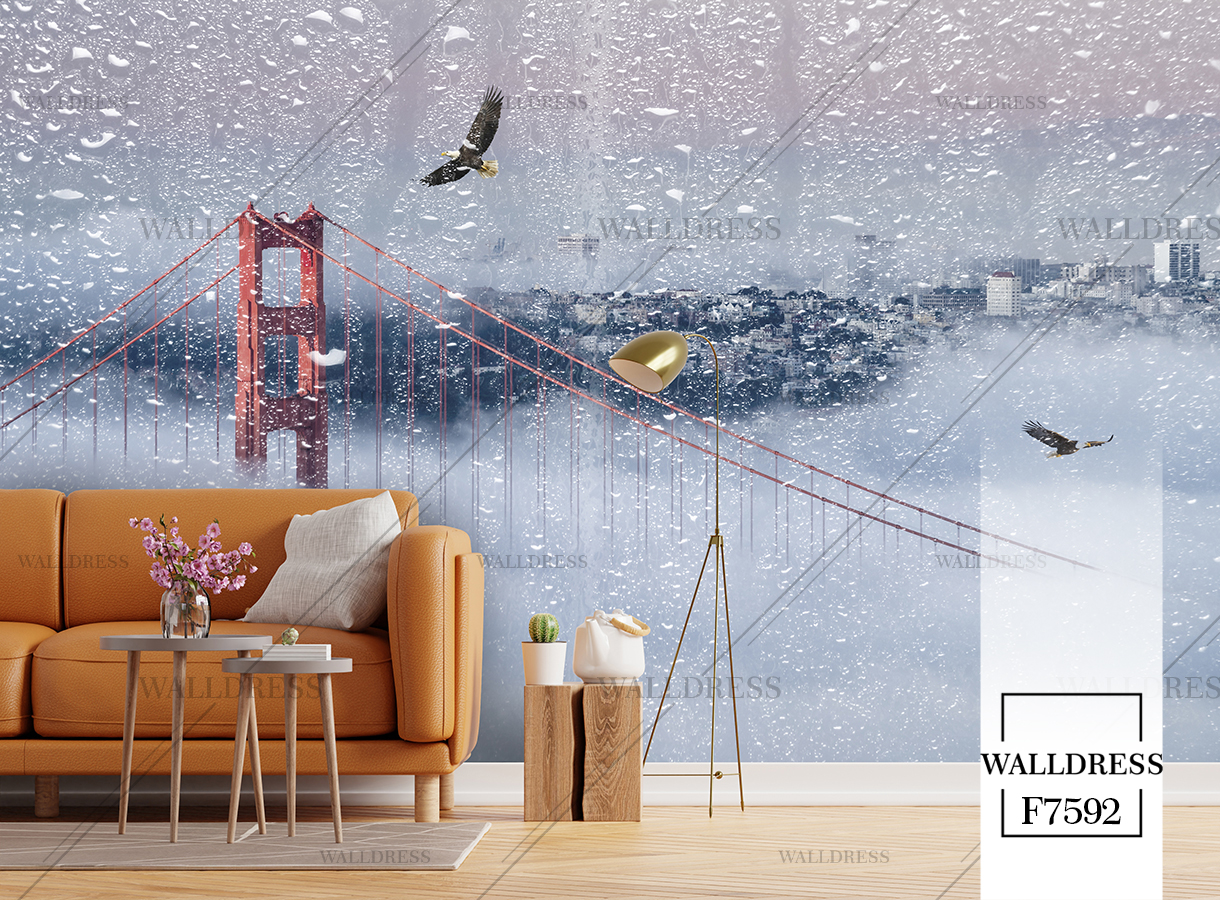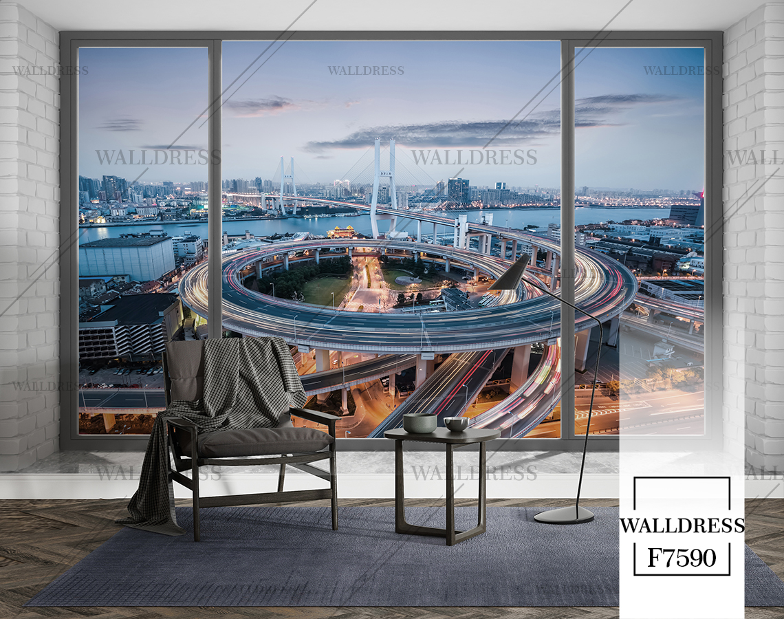 پوستر و کاغذ دیواری نمای شهر با منظره ساختمانی طراحی مدرن طبیعی و سورئال و خطوط معماری مناسب فضاهای امروزی و موسسات فروش املاک |