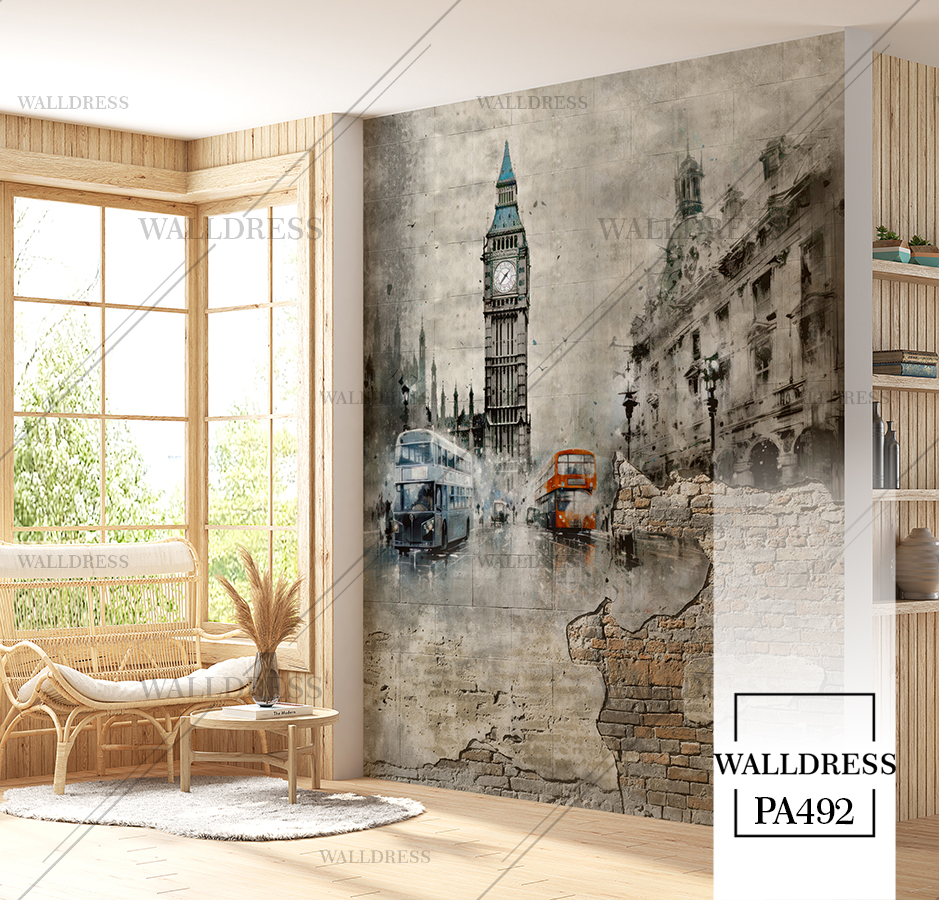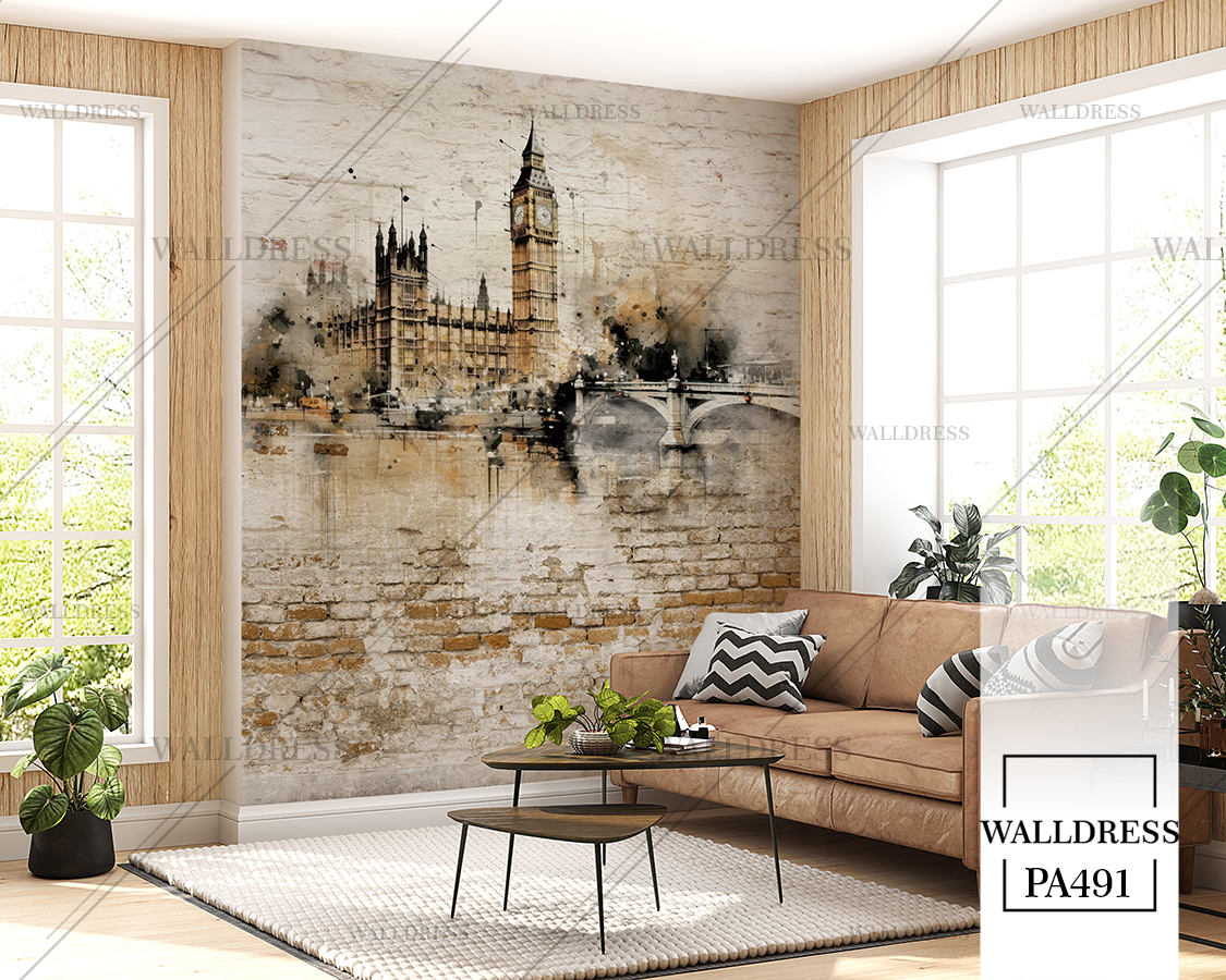 پوستر و کاغذ دیواری نمای شهر با منظره ساختمانی طراحی مدرن طبیعی و سورئال و خطوط معماری مناسب فضاهای امروزی و موسسات فروش املاک | برج ساعت