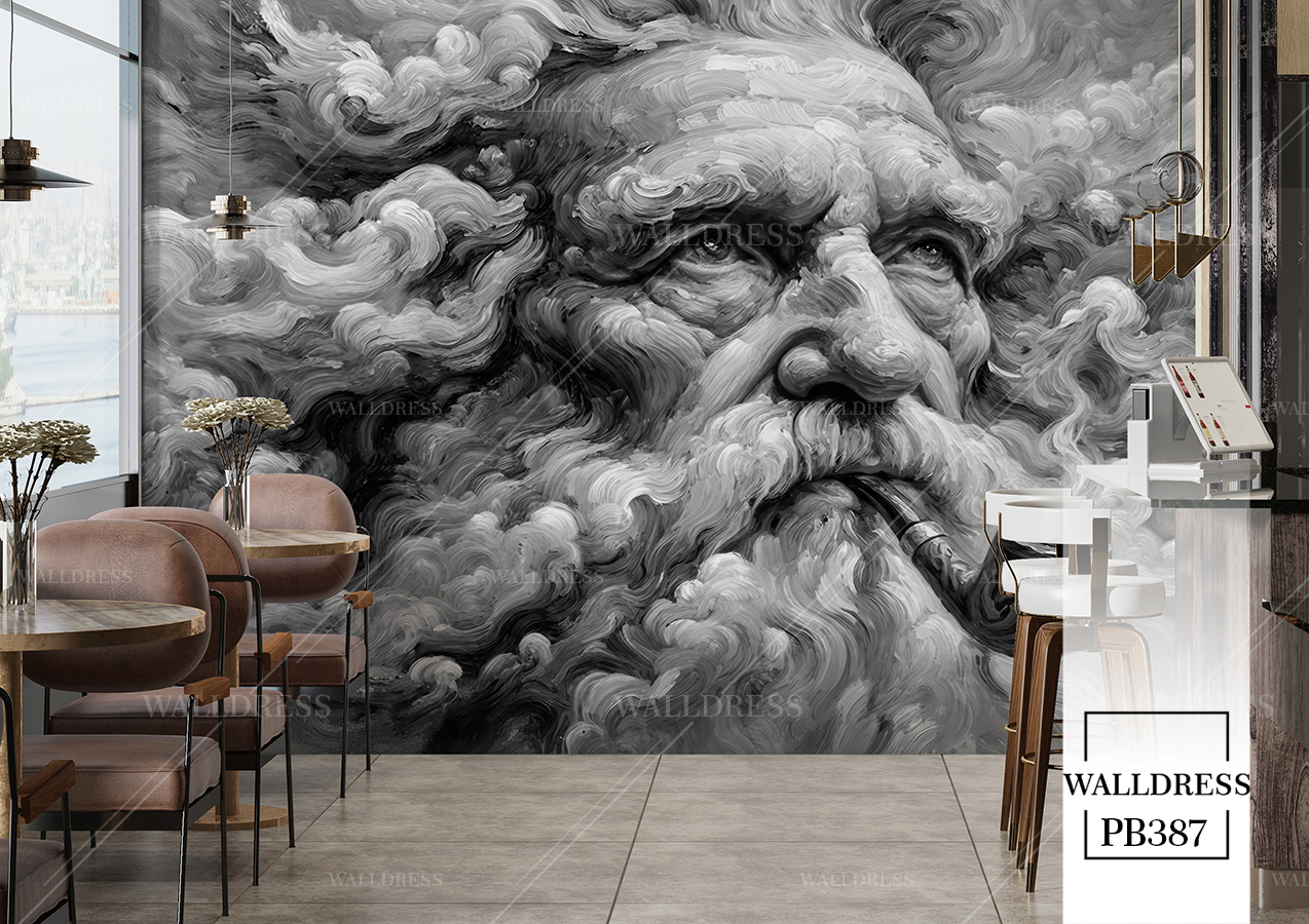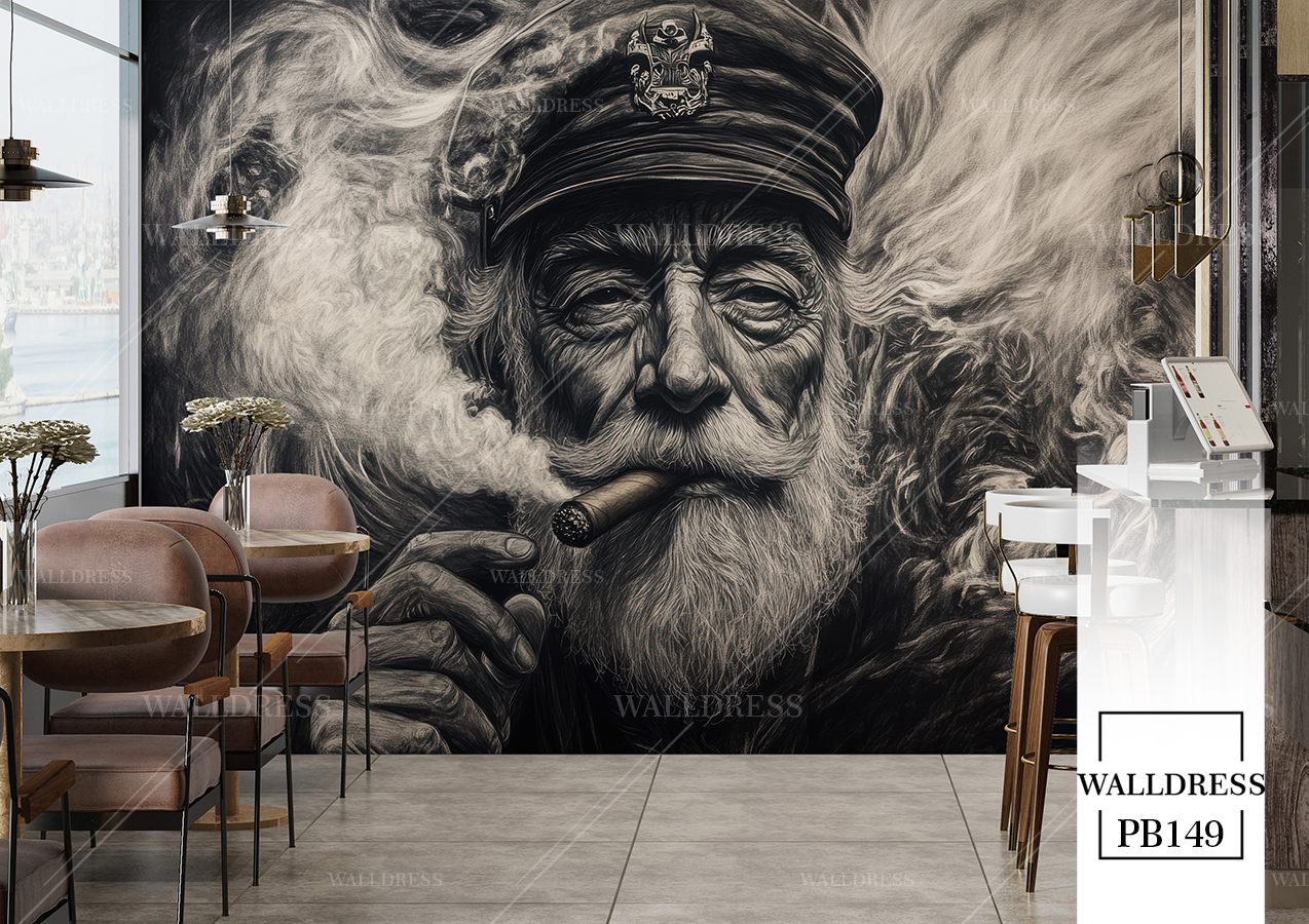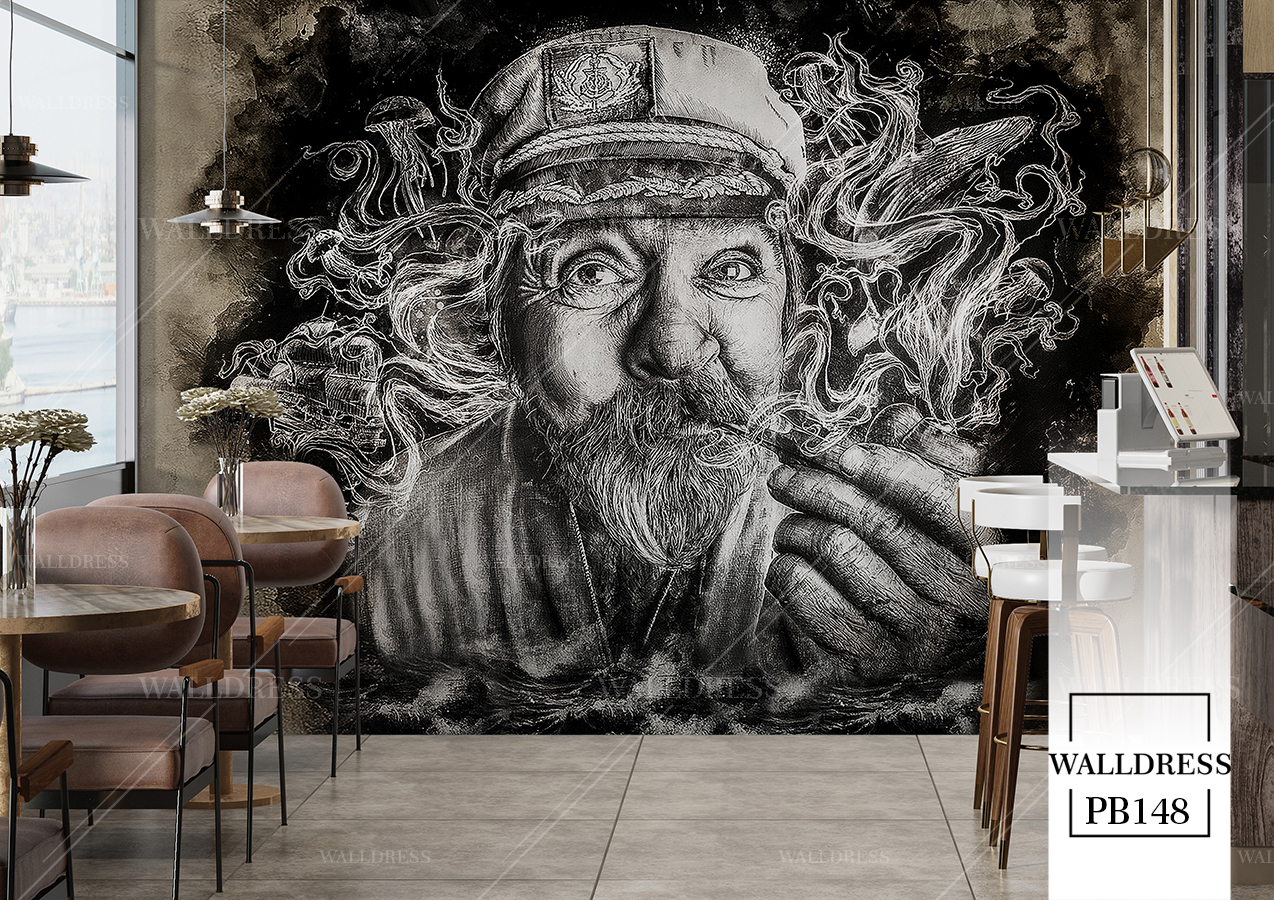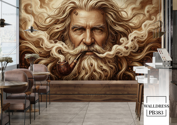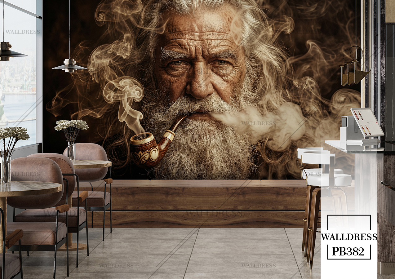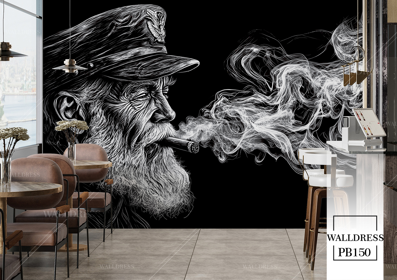 پوستر دیواری پیرمرد ریش دار و پیپ برای کافی شاپ