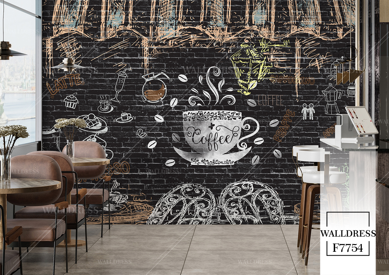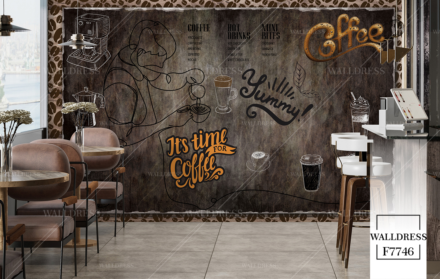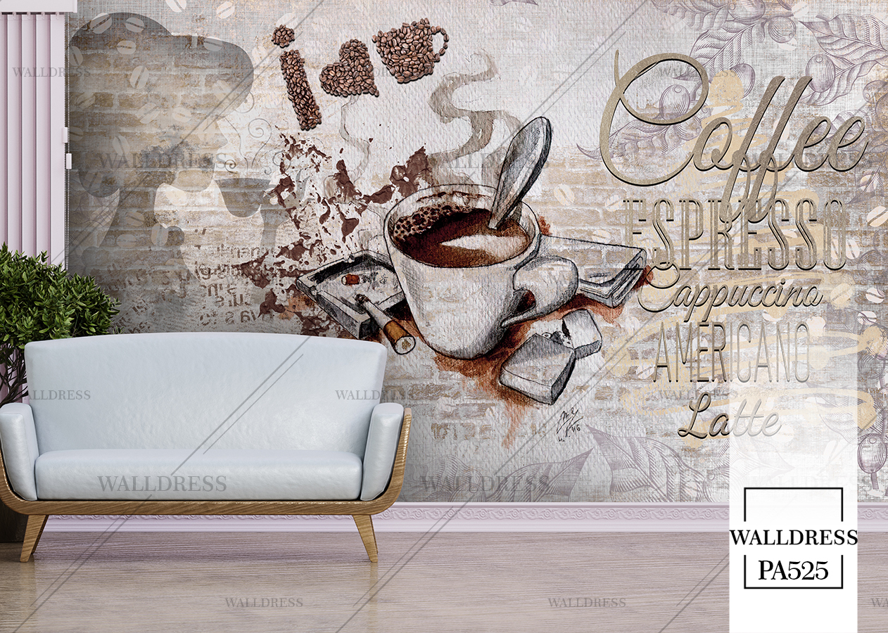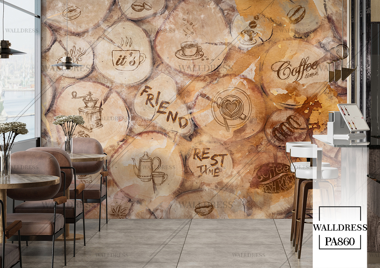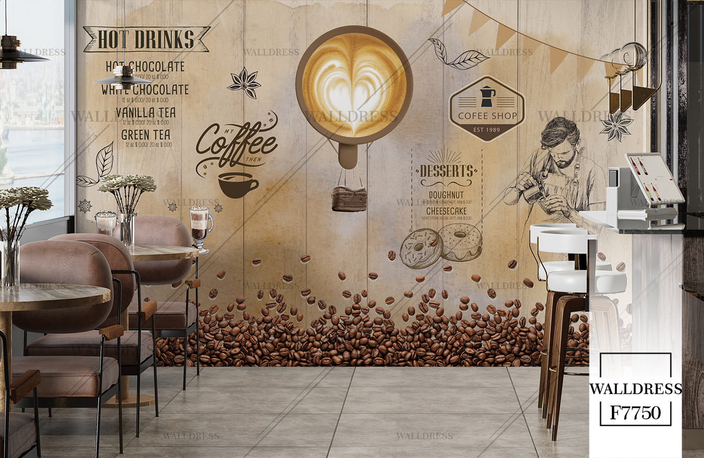 کاغذ دیواری طرح قهوه برای کافی شاپ