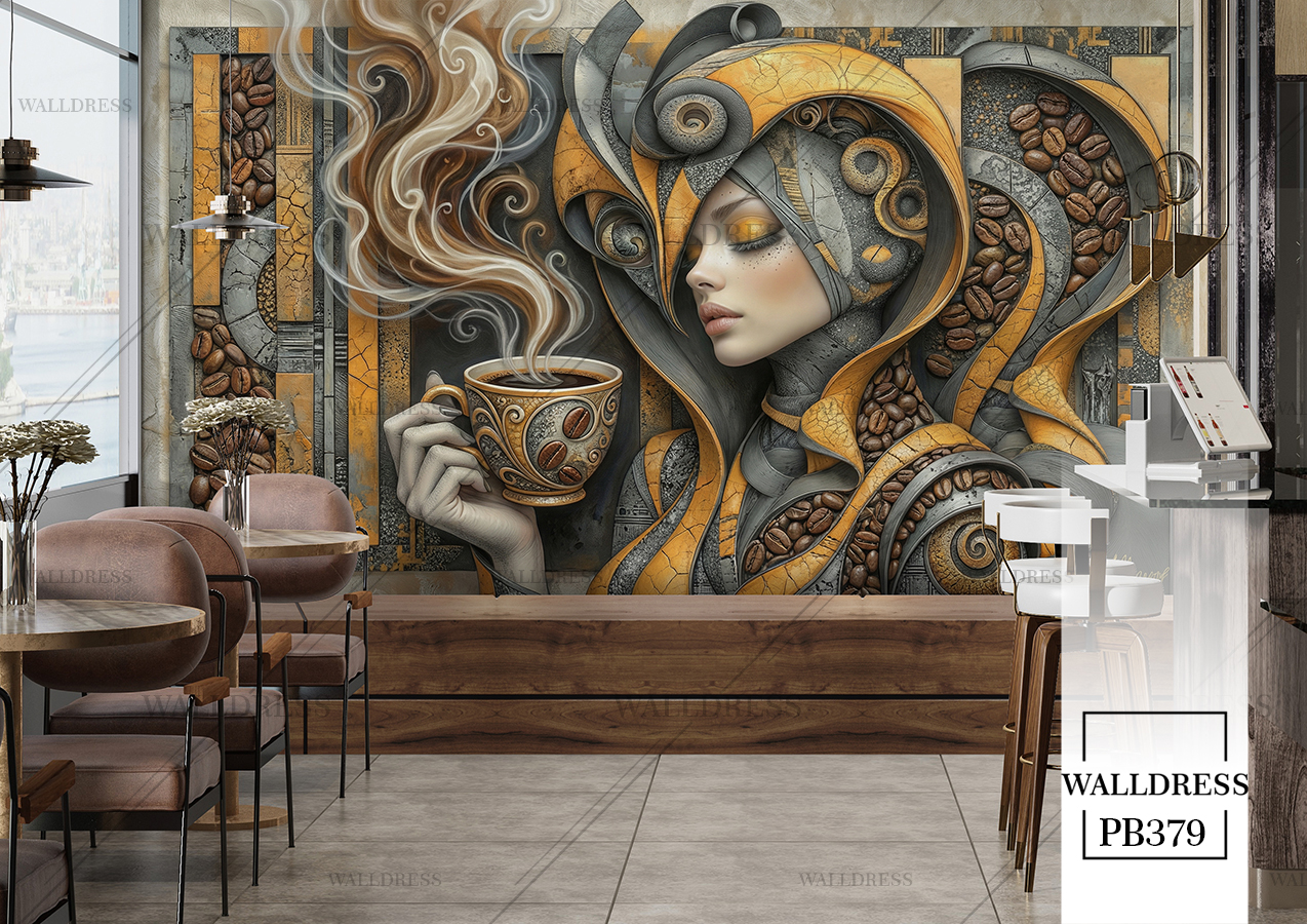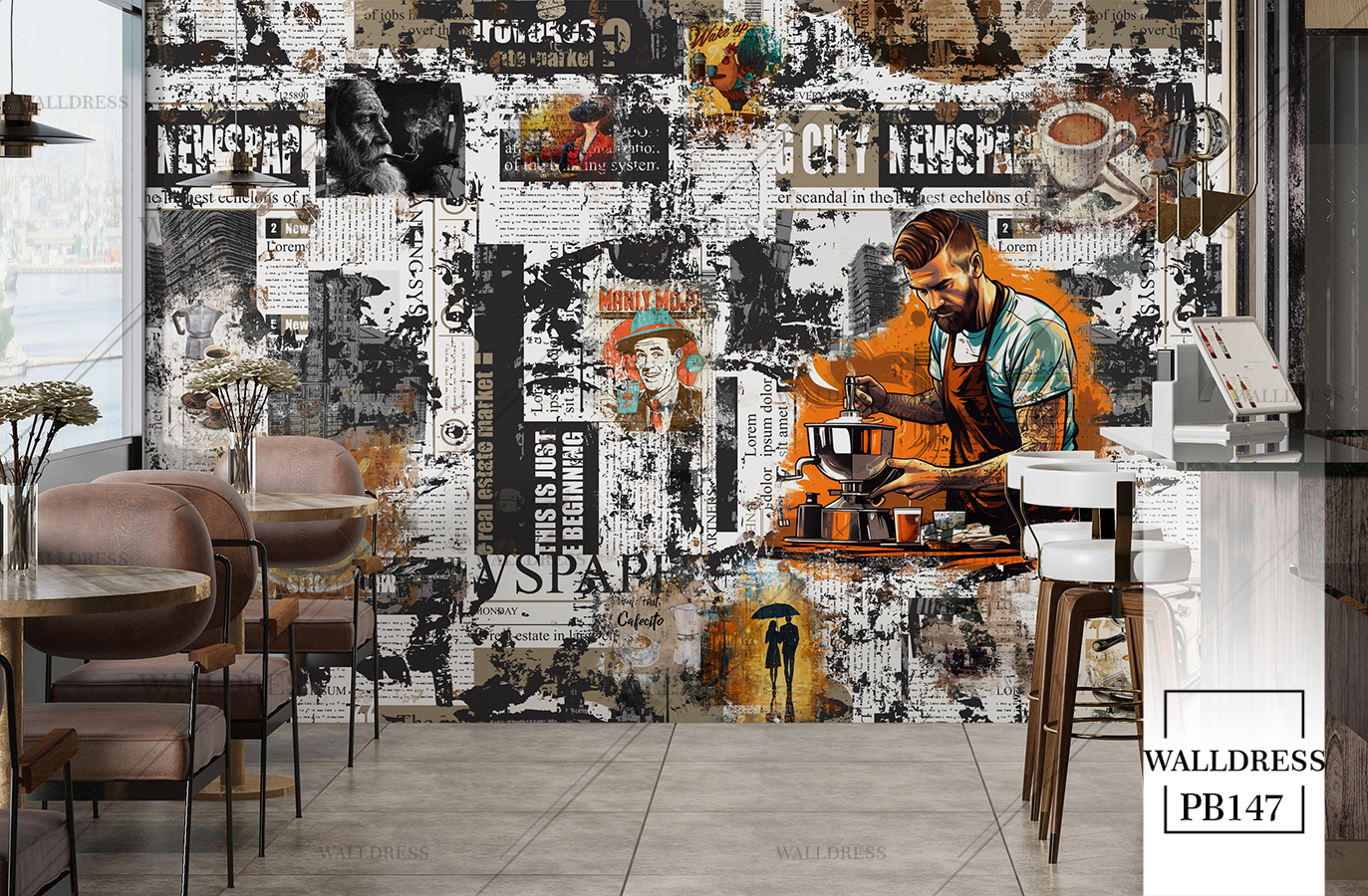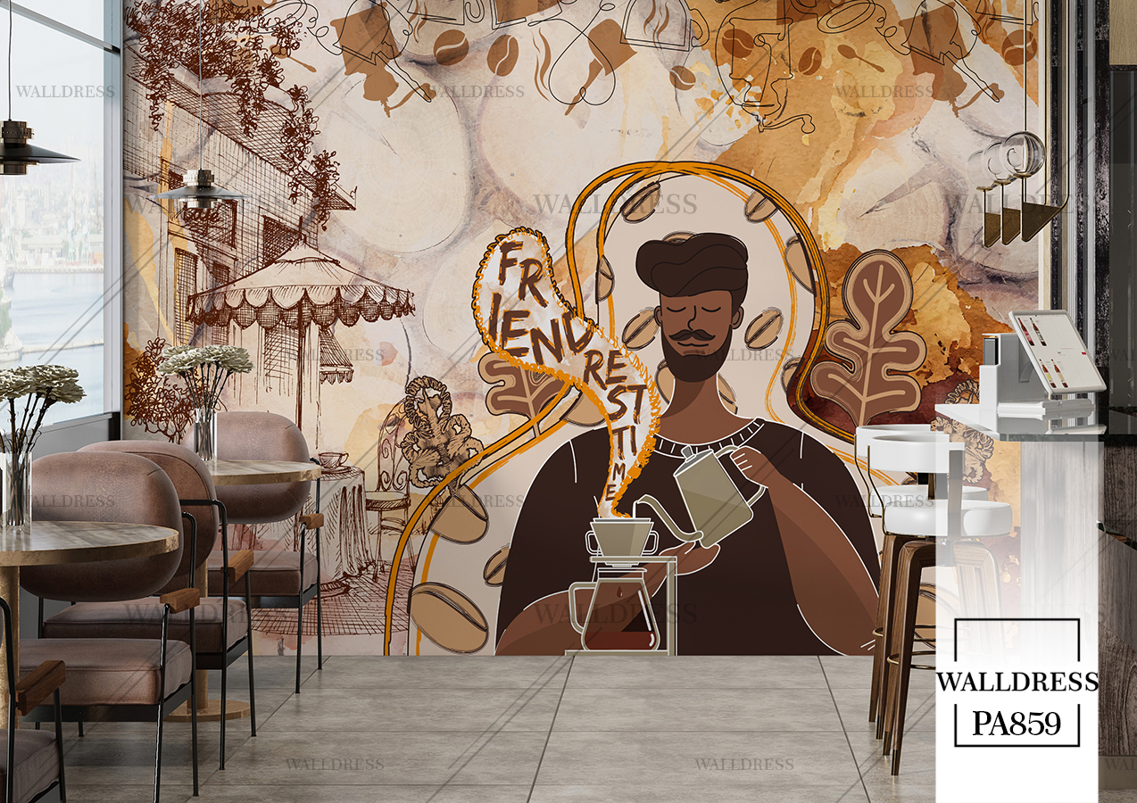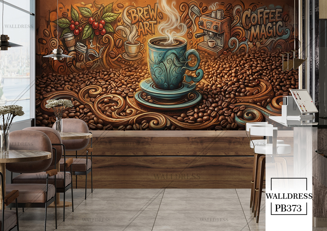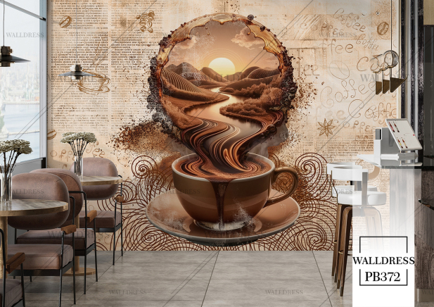 کاغذ دیواری طرح قهوه برای کافی شاپ