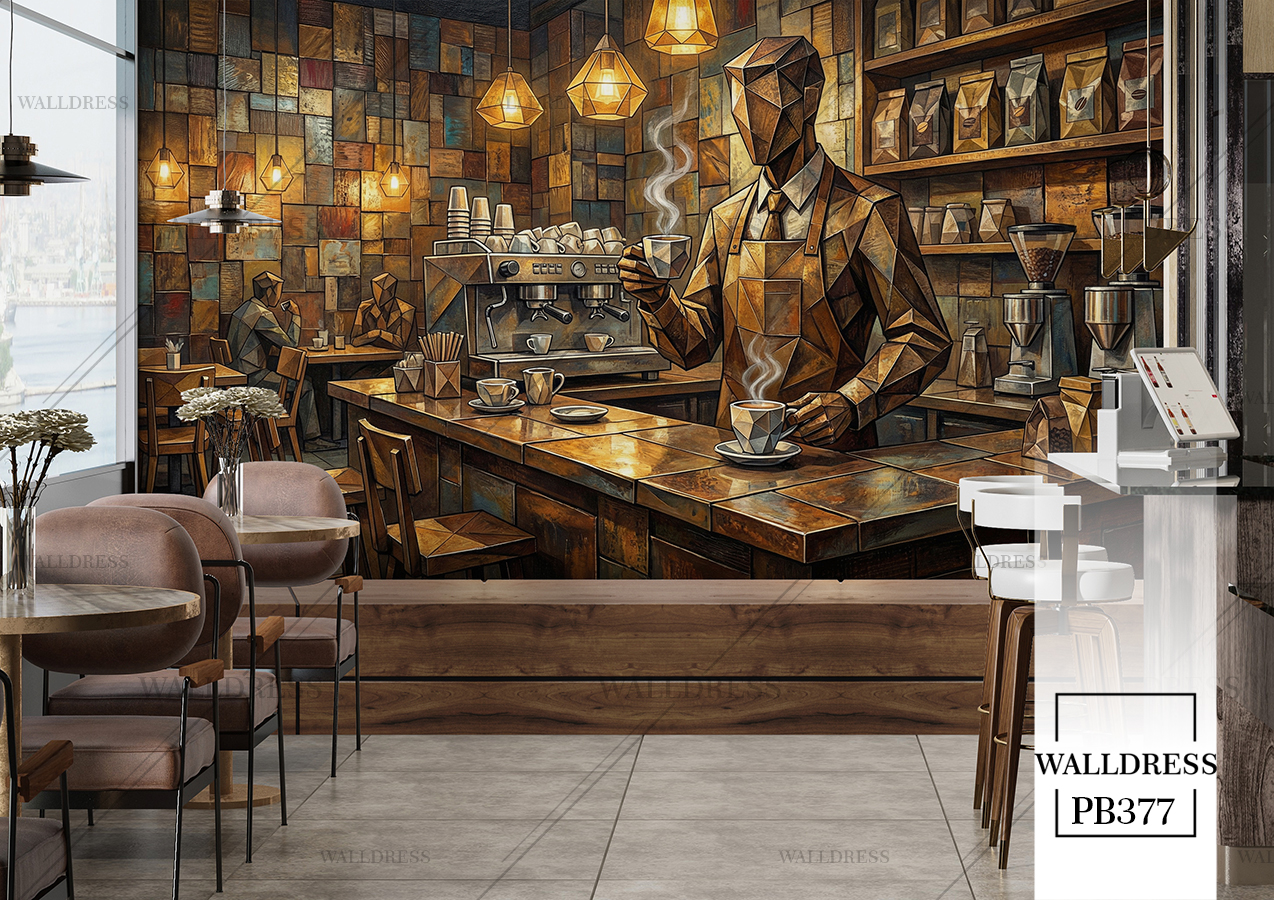 پوستر دیواری باریستا سبک کوبیسم برای کافی شاپ
