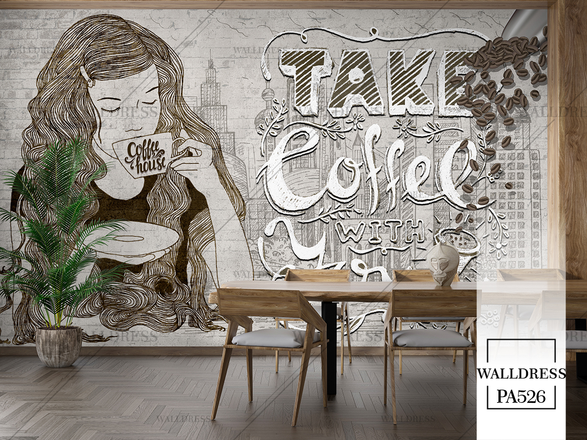 کاغذ دیواری طرح نوشته انگلیسی مخصوص کافی شاپ