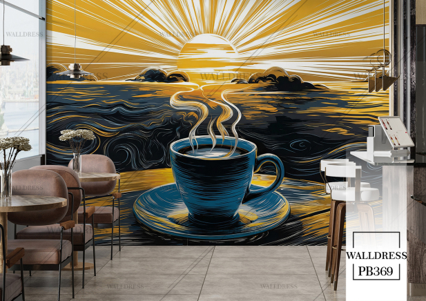 پوستر دیواری طرح قهوه و خورشید سبک نقاشی