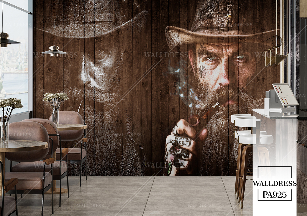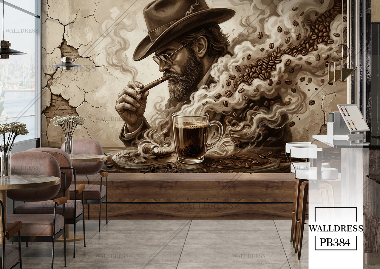 پوستر دیواری طرح قهوه و مرد کابوی برای کافی شاپ