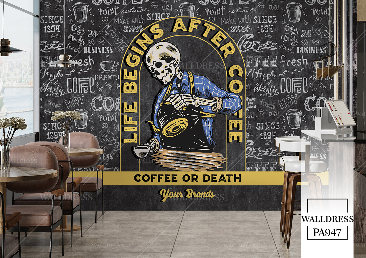 پوستر دیواری طرح بارستا اسکلتی برای کافی شاپ