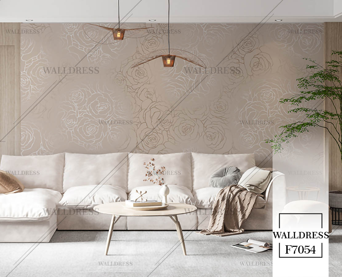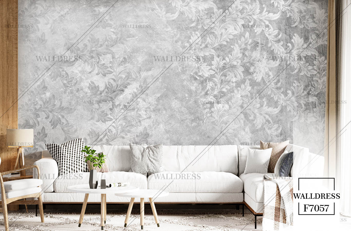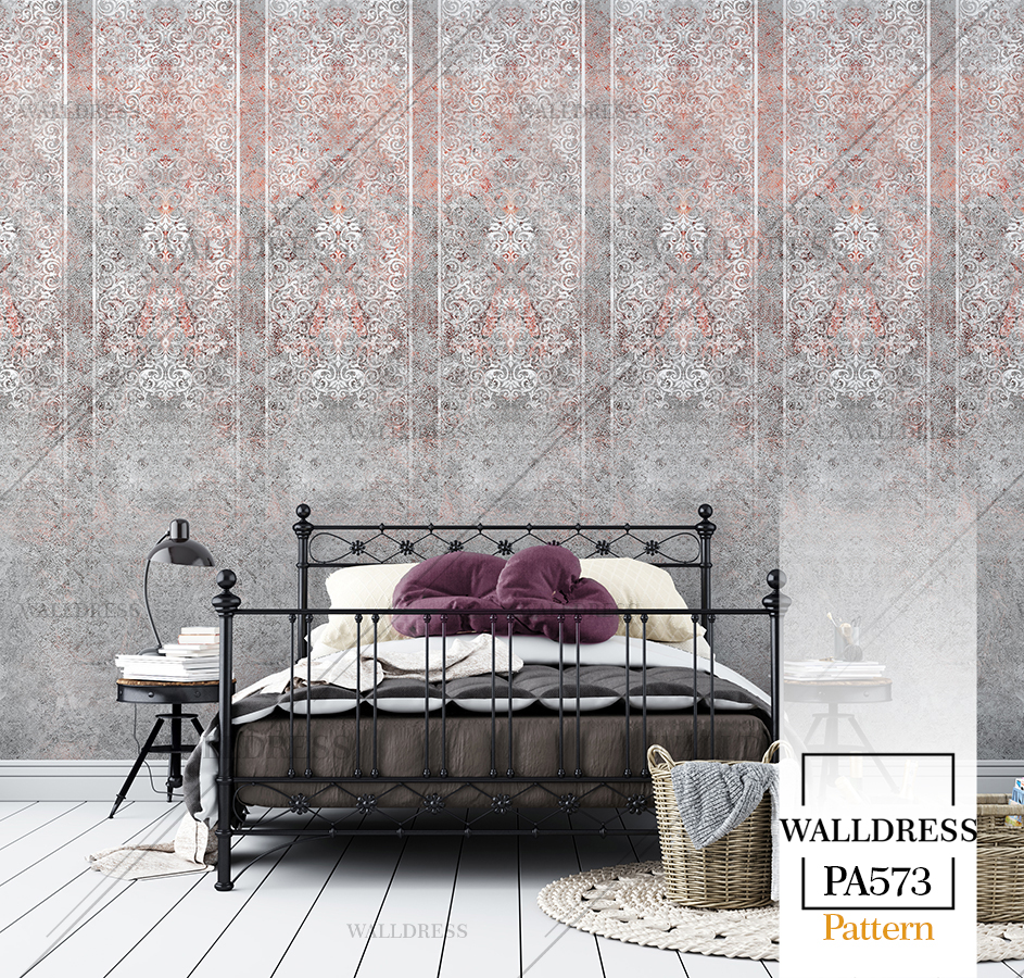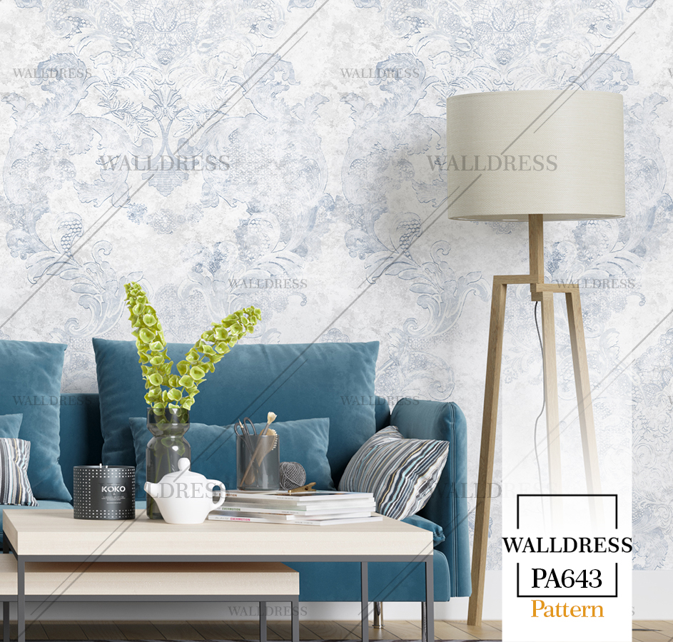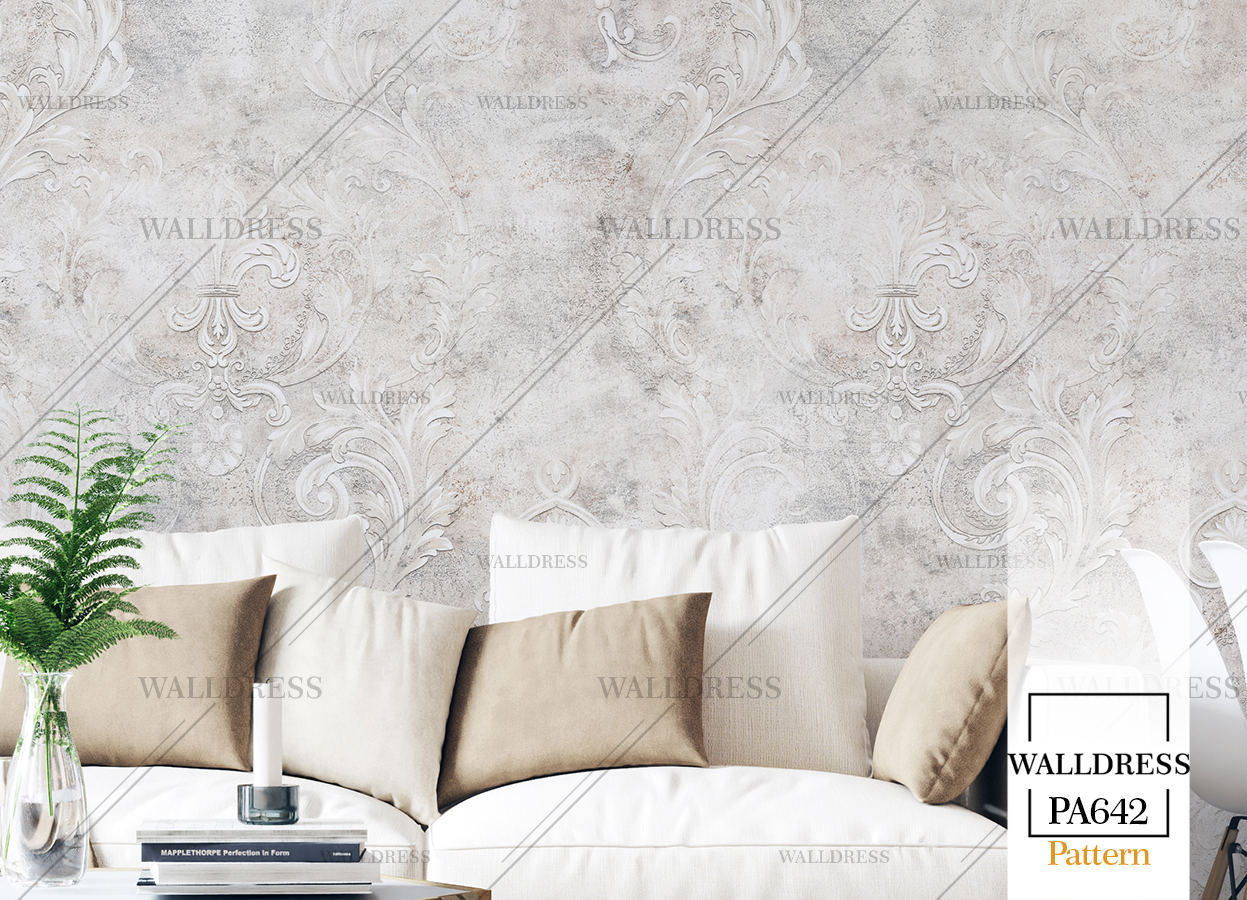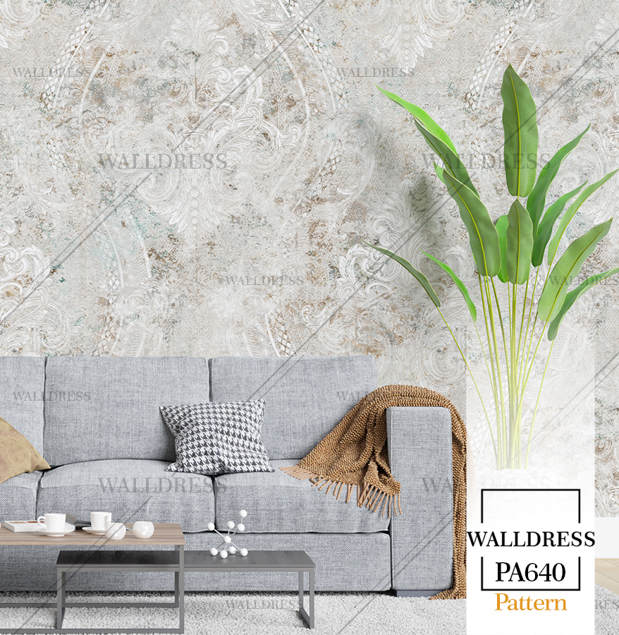 پوستر دیواری نئو کلاسیک با طراحی ظریف و تلفیق کلاسیک و مدرن مناسب فضاهای شیک و مدرن | داماسک دار و طوسی