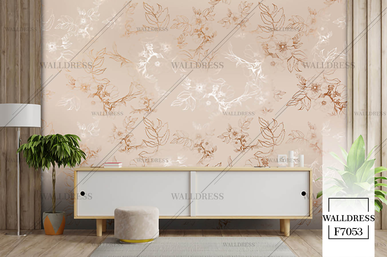 پوستر دیواری نئو کلاسیک با طراحی ظریف و تلفیق کلاسیک و مدرن با جزئیات پتینه ای مناسب فضاهای شیک و مدرن | فلورال و پیچک های براق و آینه ای