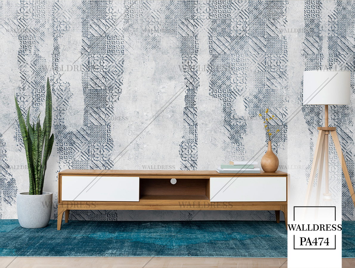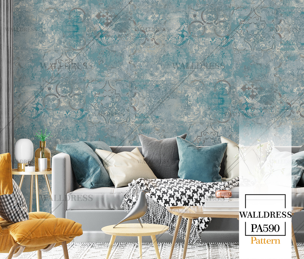 پوستر دیواری نئو کلاسیک با طراحی ظریف و تلفیق کلاسیک و مدرن با جزئیات پتینه ای مناسب فضاهای شیک و مدرن | تم طوسی و آبی