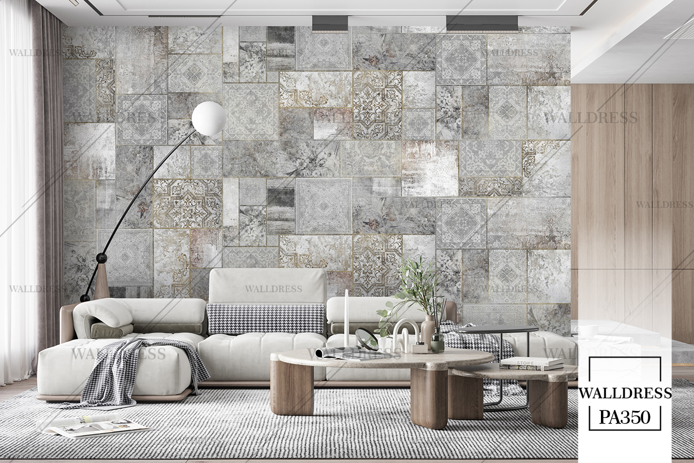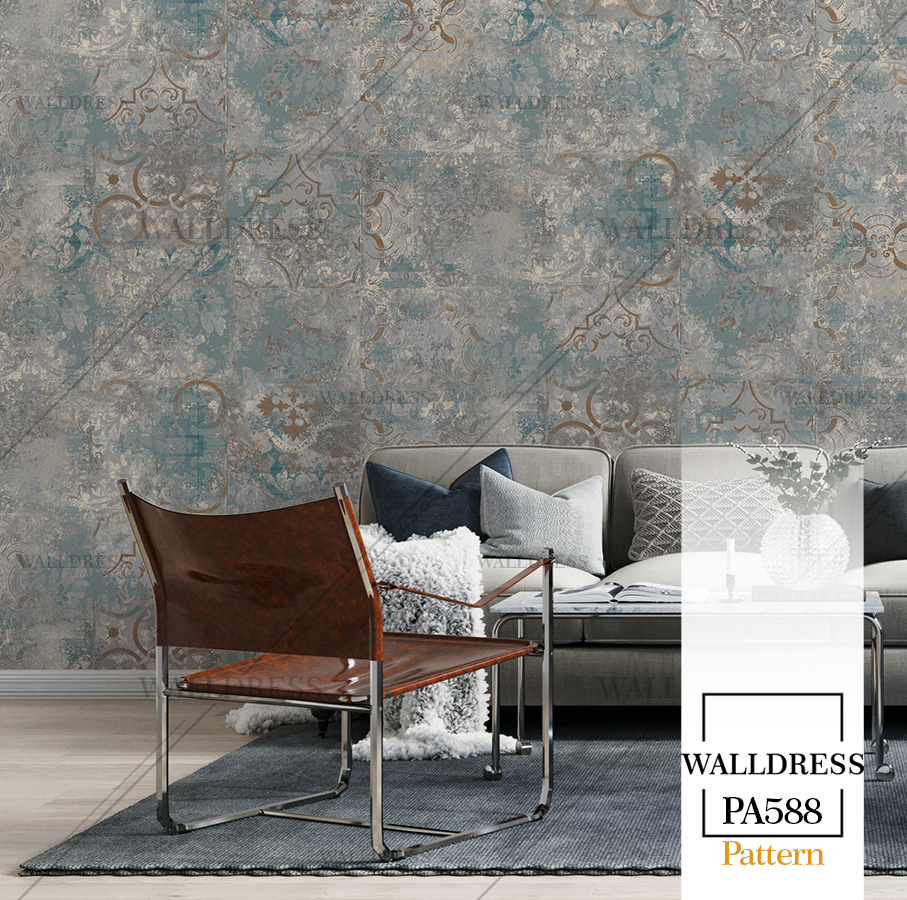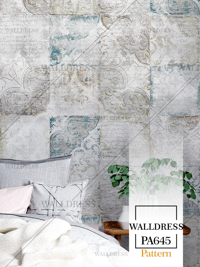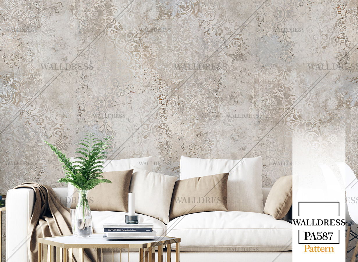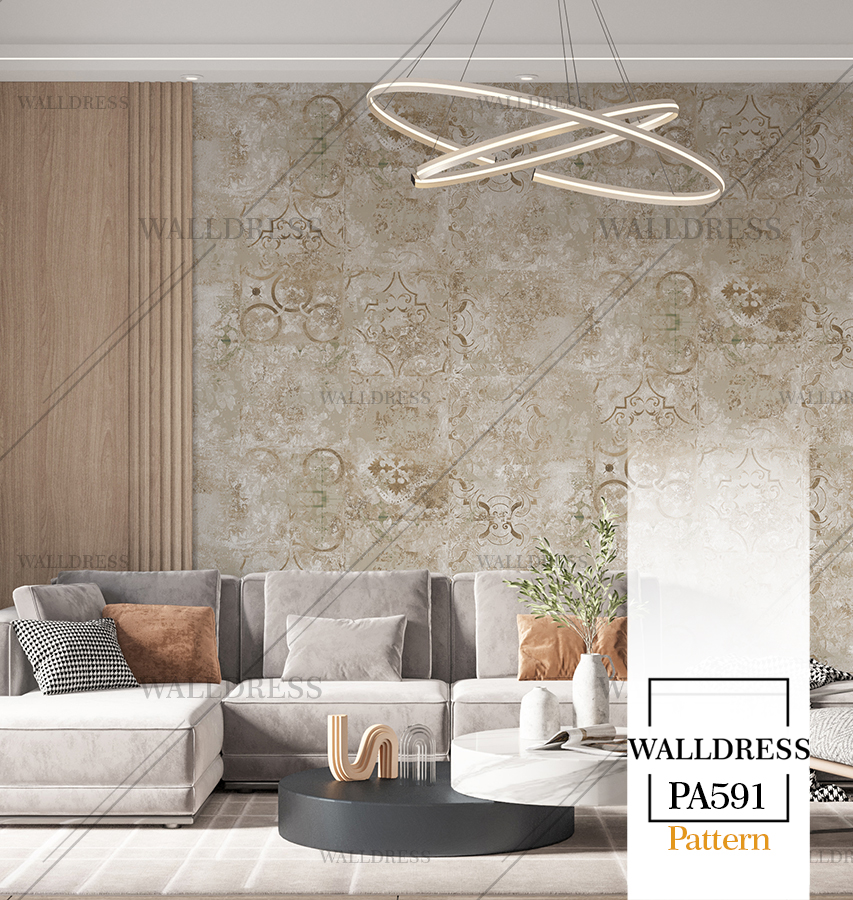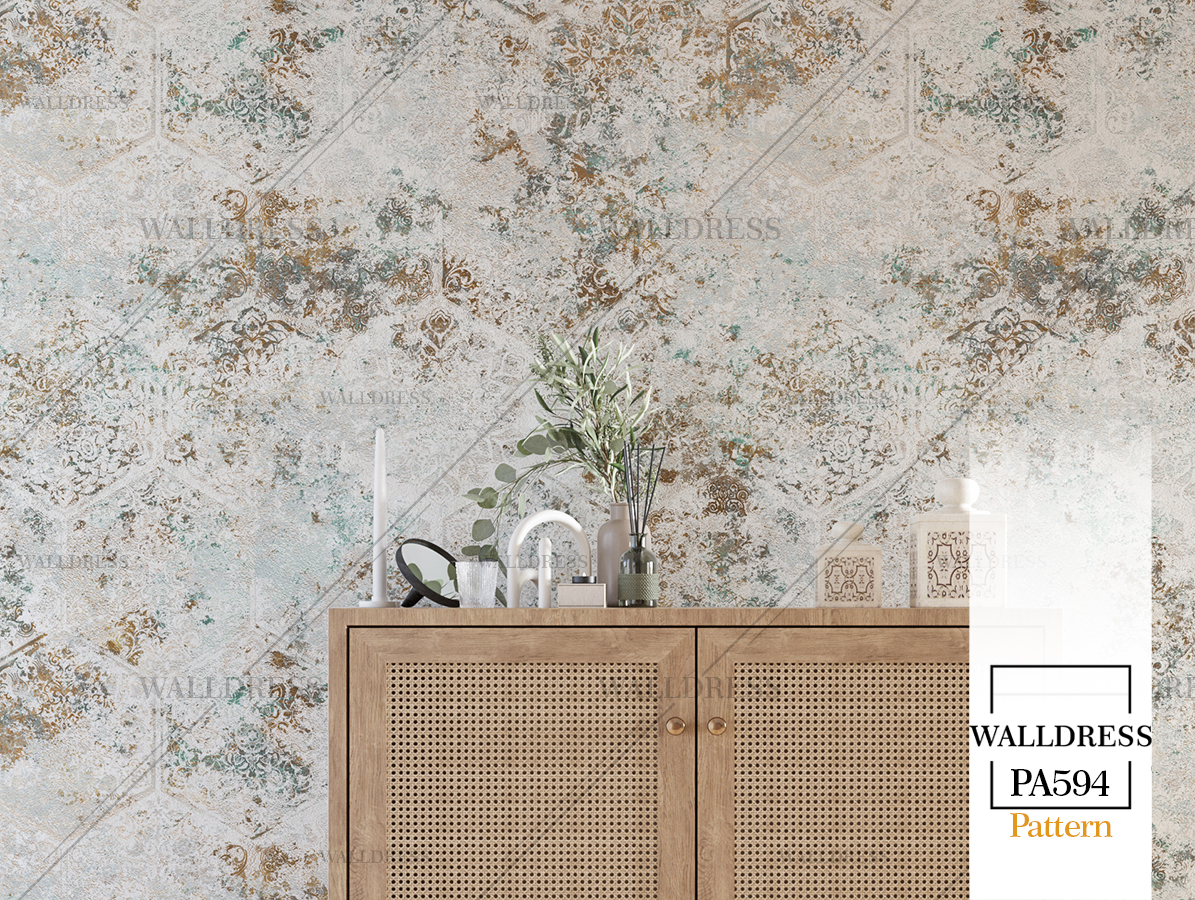 پوستر دیواری نئو کلاسیک با طراحی ظریف و تلفیق کلاسیک و مدرن با جزئیات پتینه ای مناسب فضاهای شیک و مدرن | حالت کاشی نامنظم