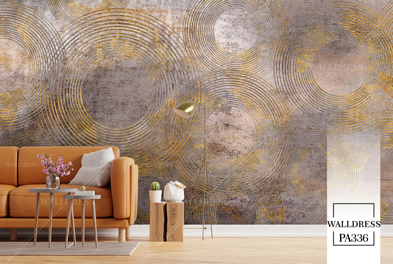 پوستر دیواری نئو کلاسیک با طراحی ظریف و تلفیق کلاسیک و مدرن با جزئیات پتینه ای مناسب فضاهای شیک و مدرن | دایره های طلایی