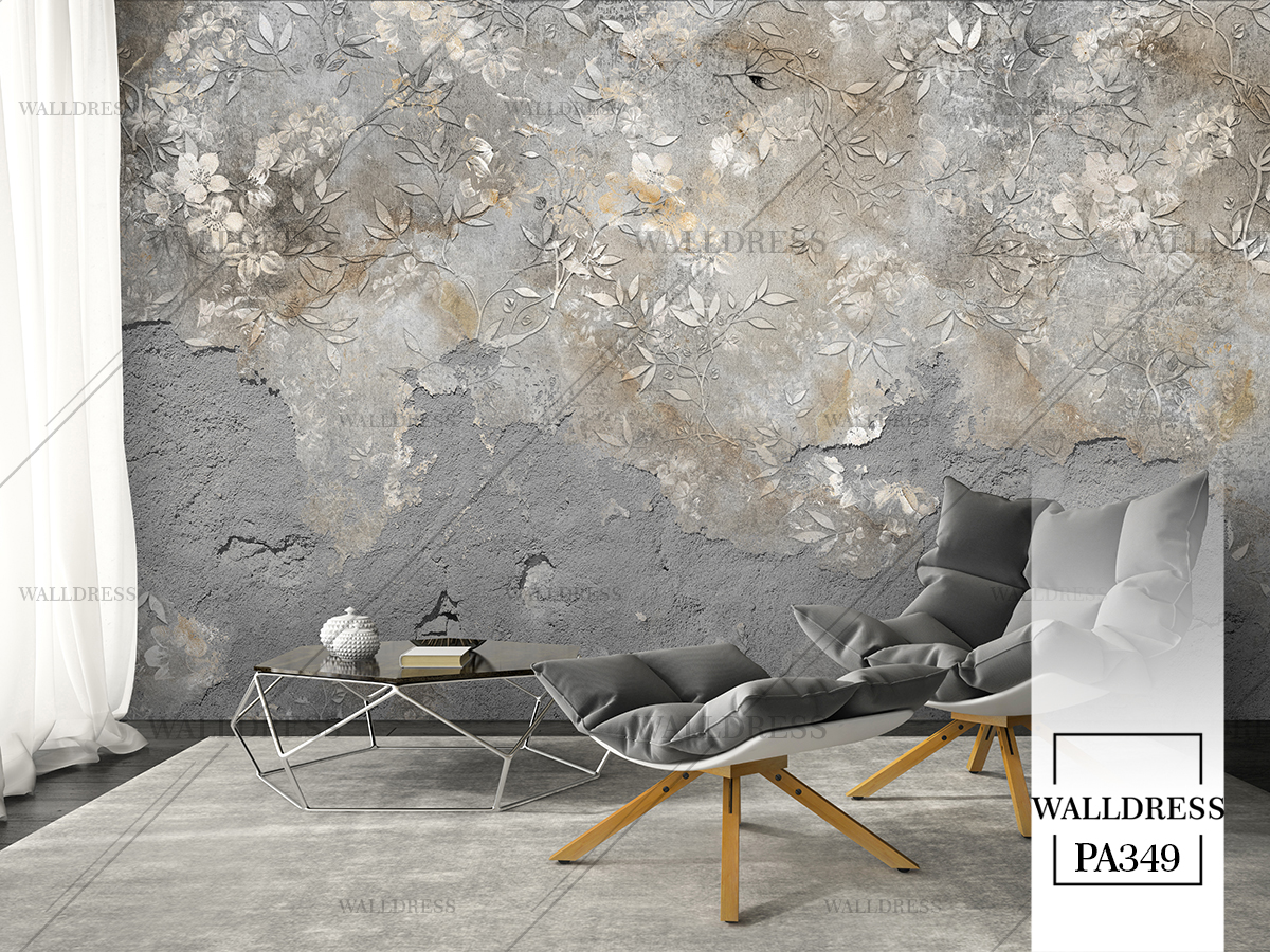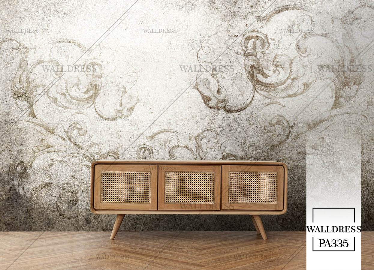 پوستر دیواری نئو کلاسیک با طراحی ظریف و تلفیق کلاسیک و مدرن با جزئیات پتینه ای مناسب فضاهای شیک و مدرن | دیوار سیمانی خراب