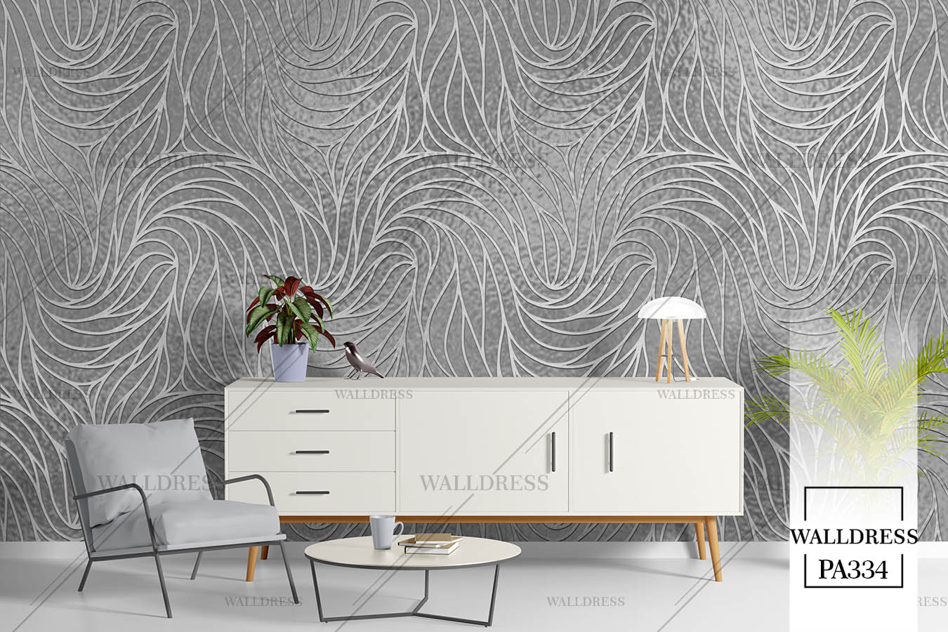 پوستر دیواری نئو کلاسیک با طراحی ظریف و تلفیق کلاسیک و مدرن با جزئیات پتینه ای مناسب فضاهای شیک و مدرن | برگ ه ای طوسی و نقره ای