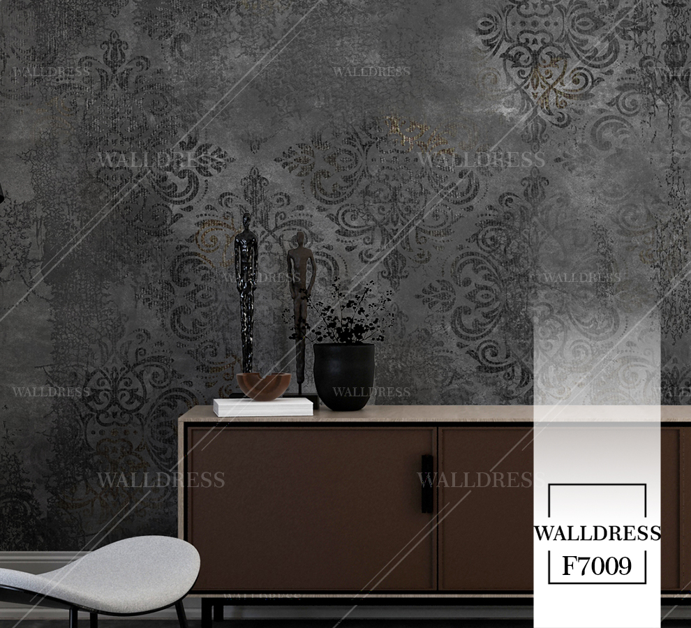 پوستر دیواری نئو کلاسیک با طراحی ظریف و تلفیق کلاسیک و مدرن با جزئیات پتینه ای مناسب فضاهای شیک و مدرن | داماسک مشکی