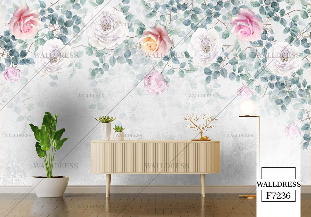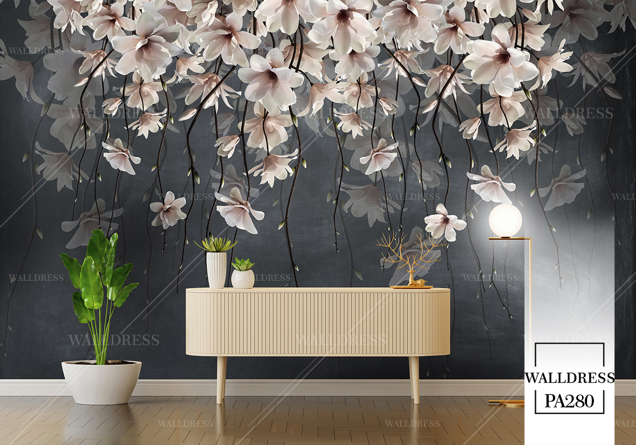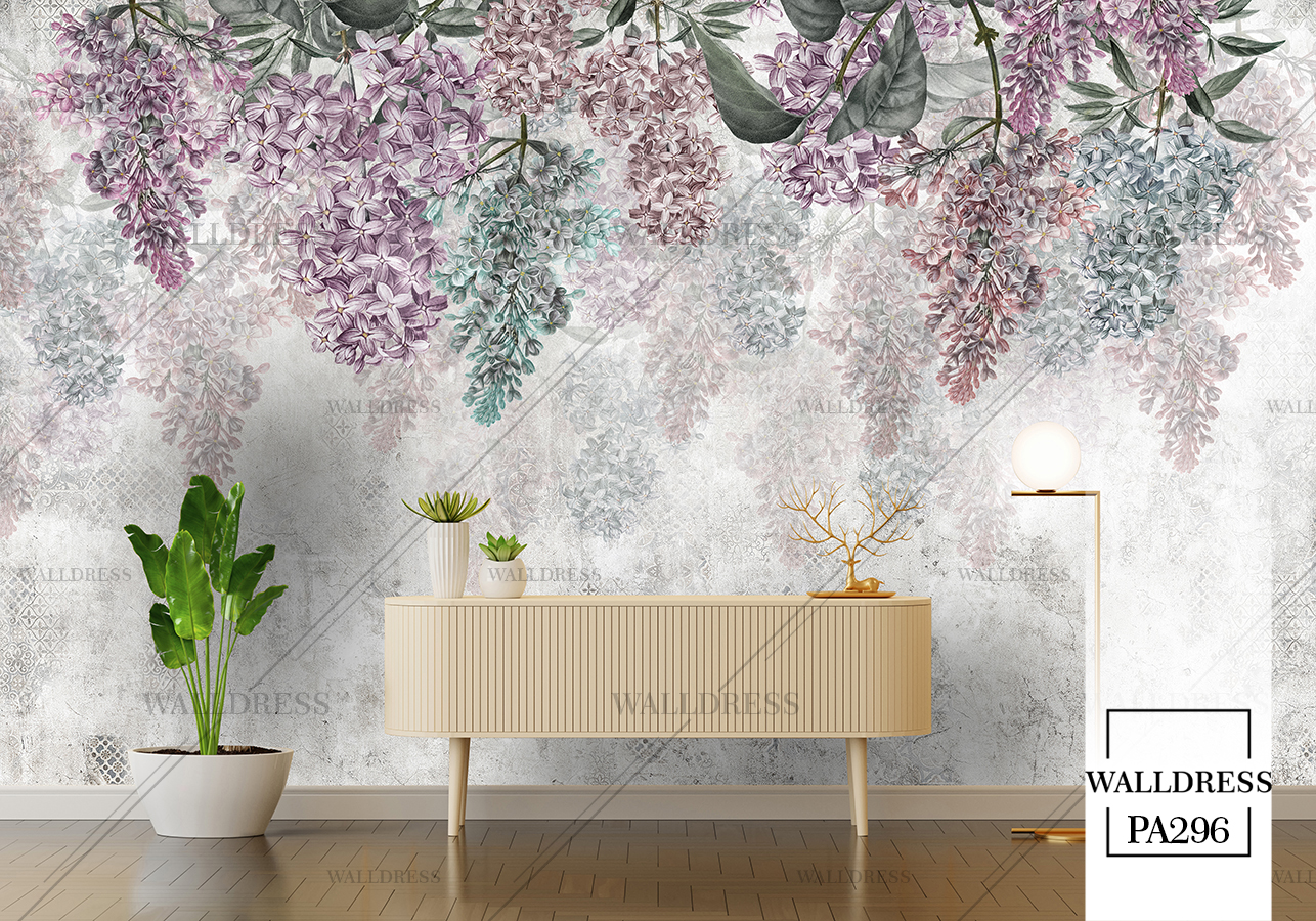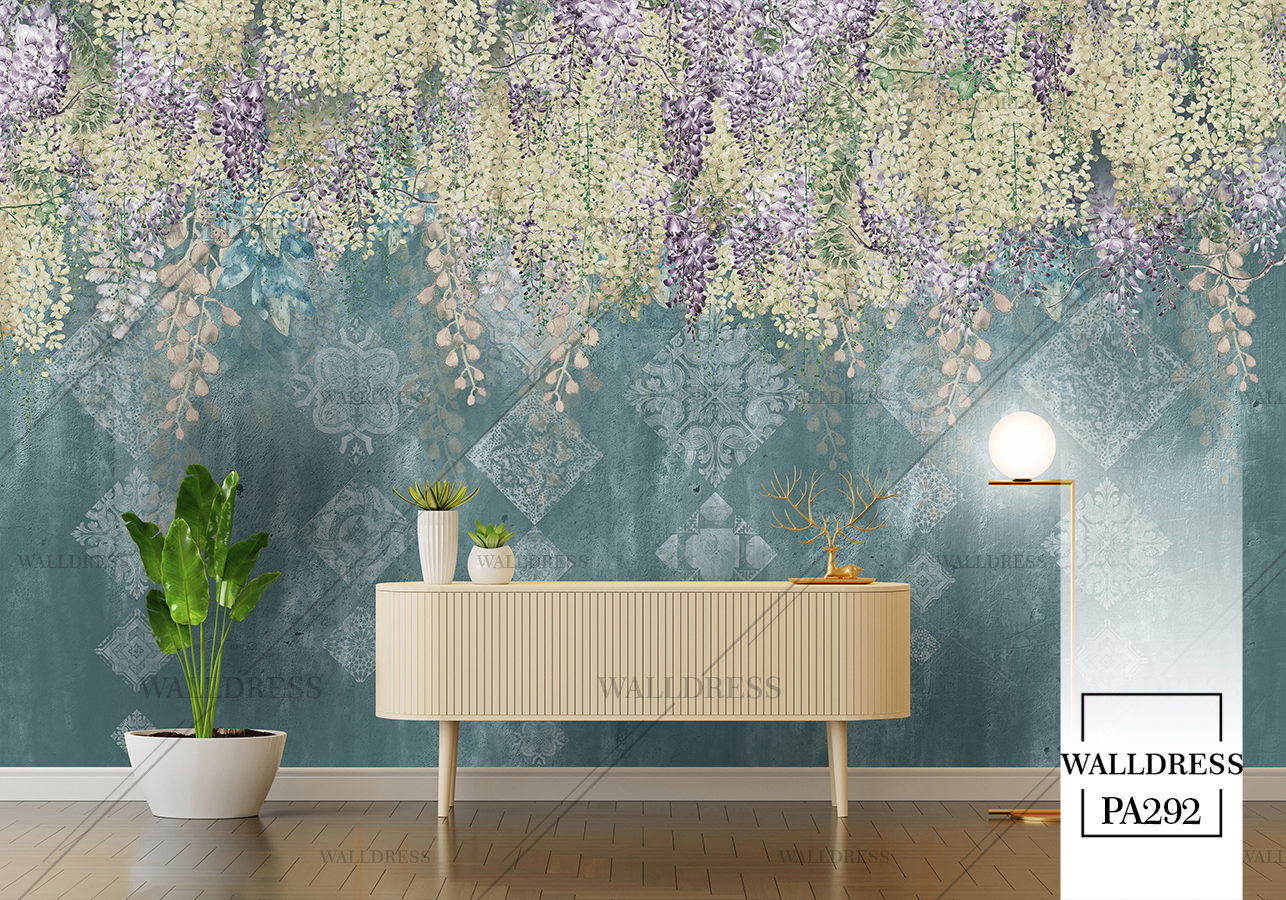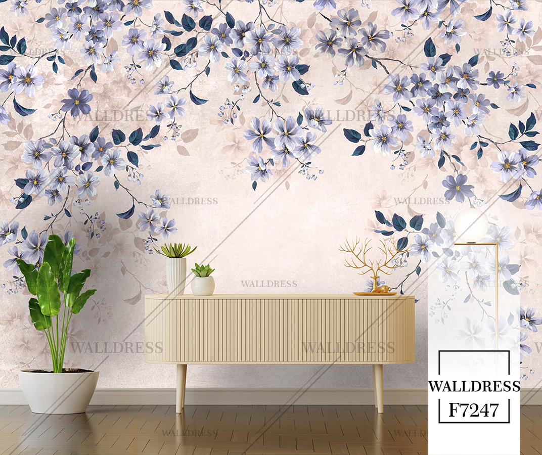 پوستر دیواری گلهای آبشاری طبیعی با طراحی از بالا به پایین با رنگهای ملایم و بافت ظریف مناسب دکوراسیون مدرن و کلاسیک