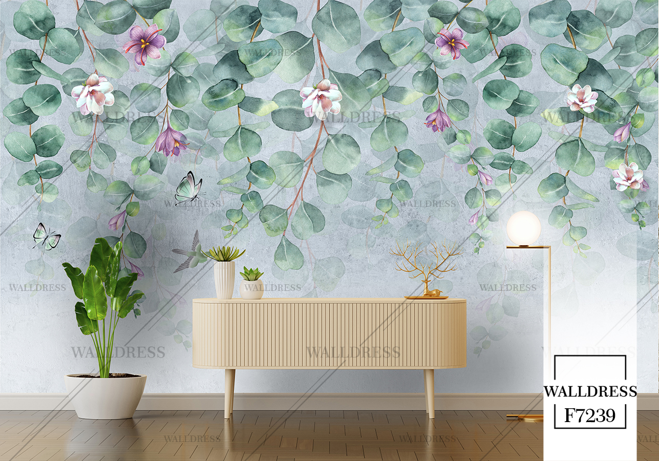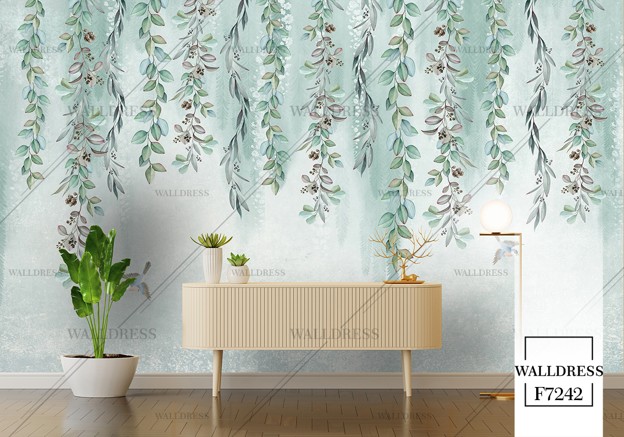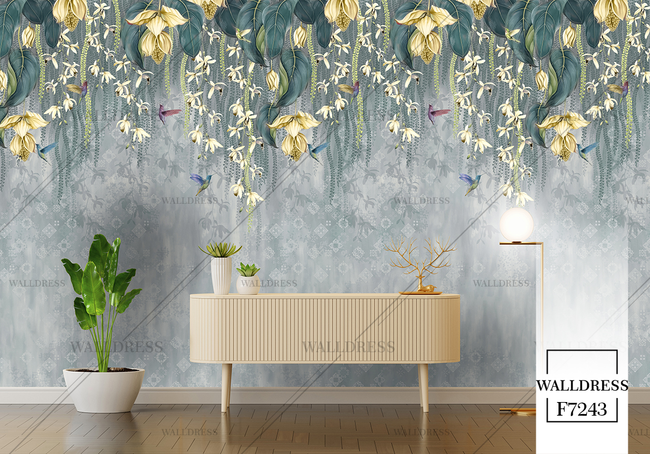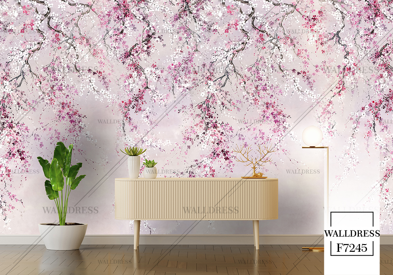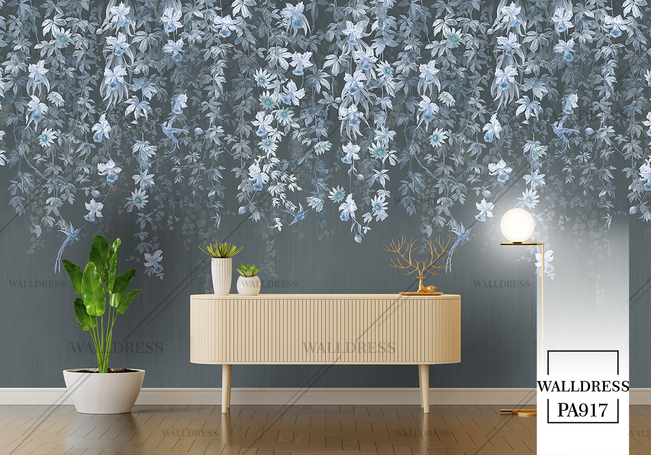 پوستر دیواری گلهای آبشاری طبیعی با طراحی از بالا به پایین با رنگهای ملایم و بافت ظریف مناسب دکوراسیون مدرن و کلاسیک
