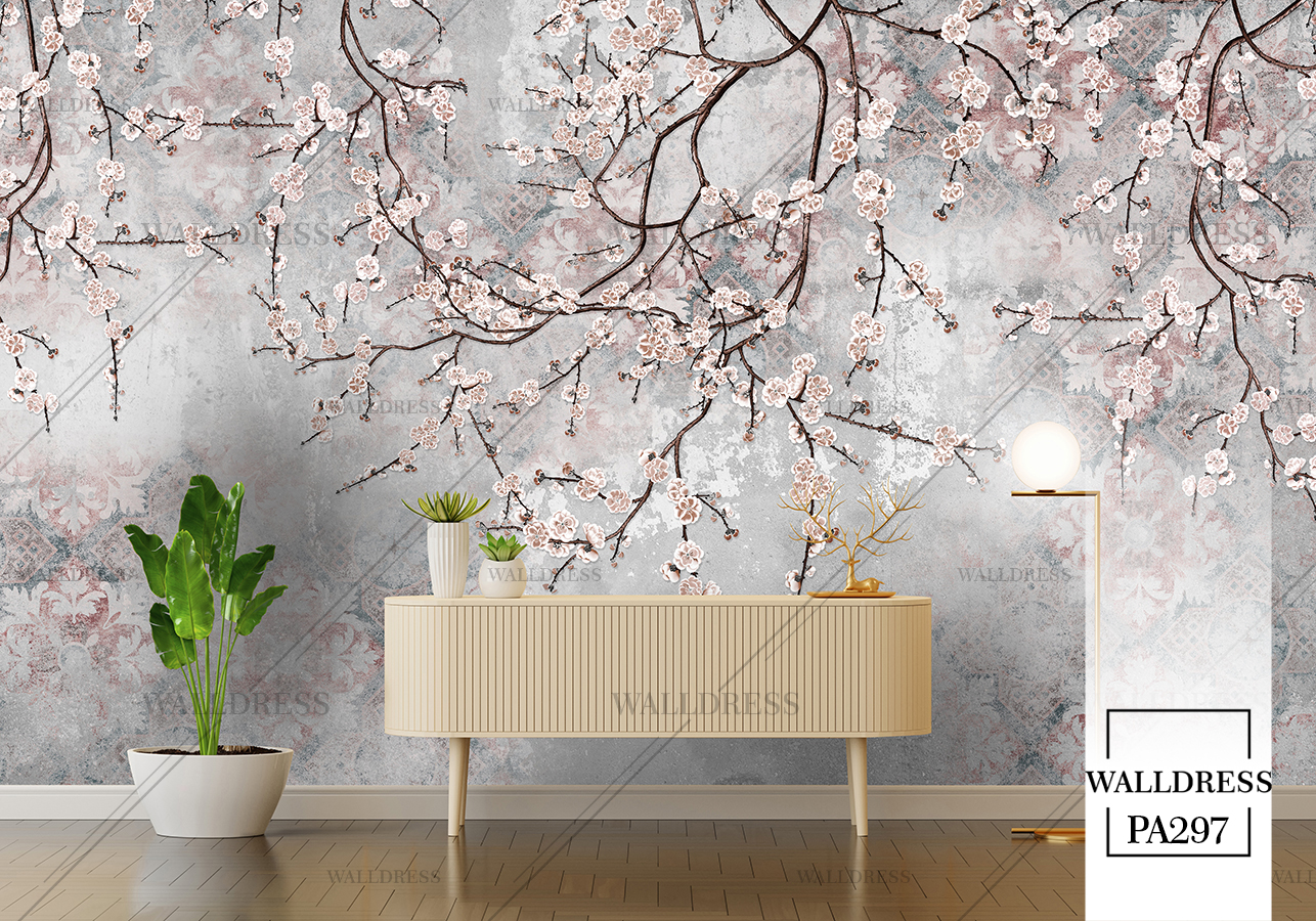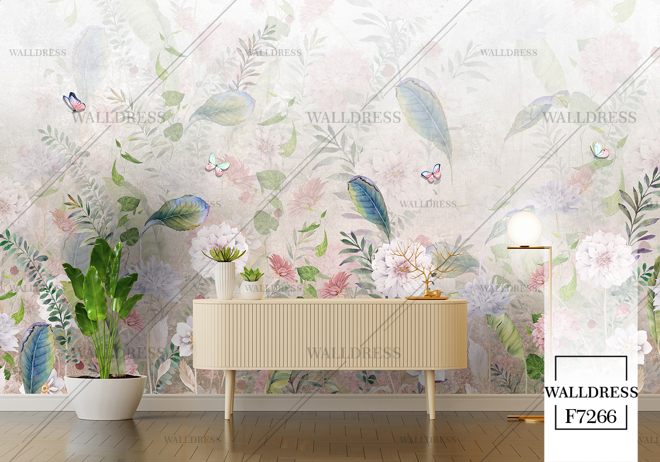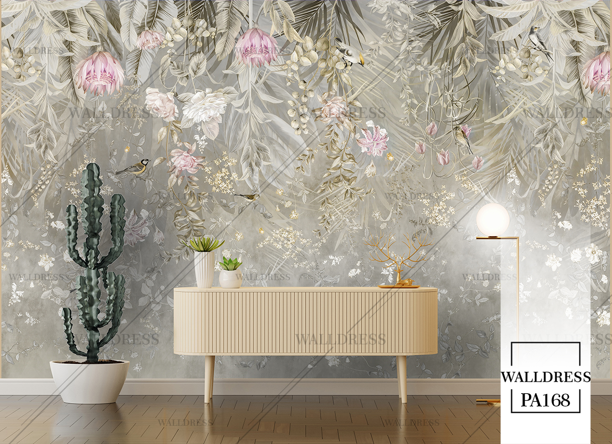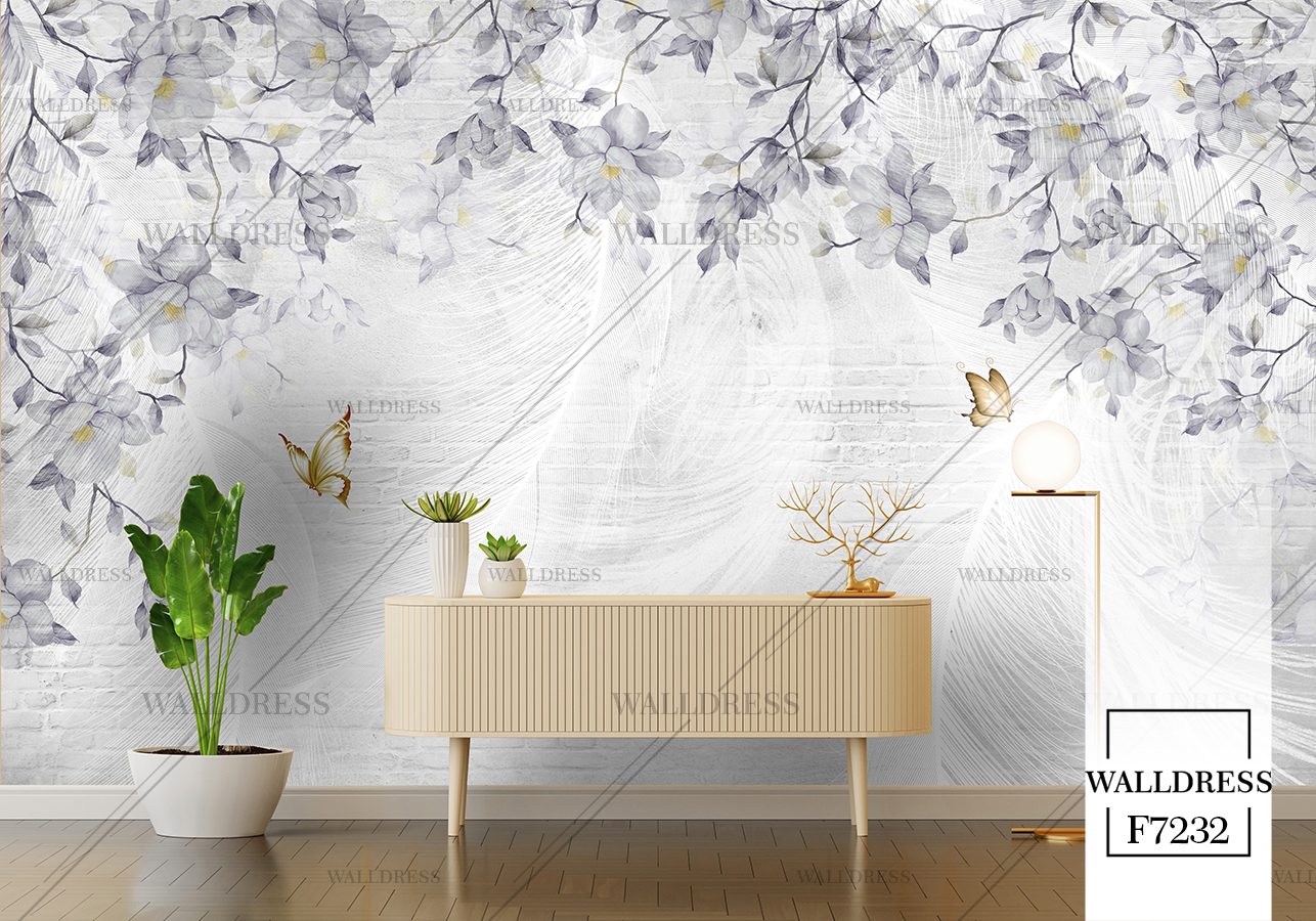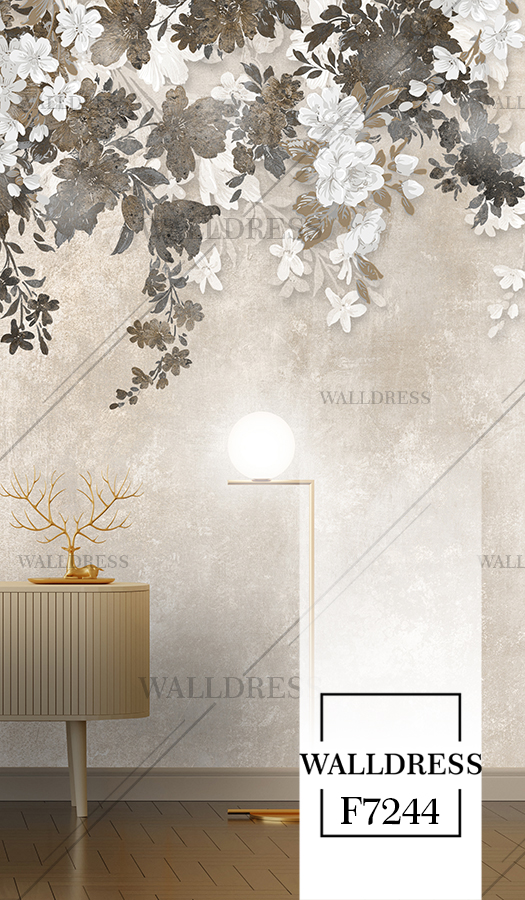 پوستر دیواری گلهای آبشاری طبیعی با طراحی از بالا به پایین با رنگهای ملایم و بافت ظریف مناسب دکوراسیون مدرن و کلاسیک