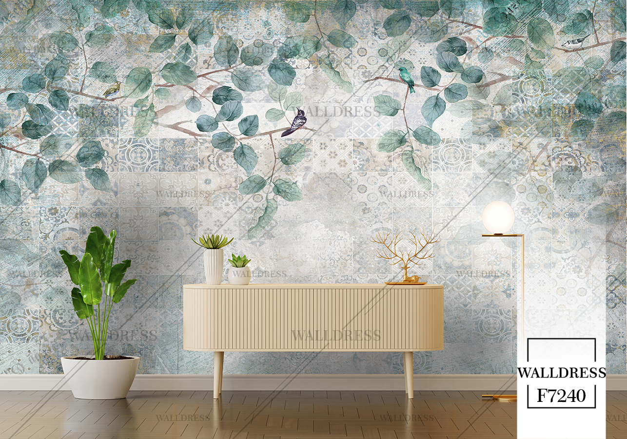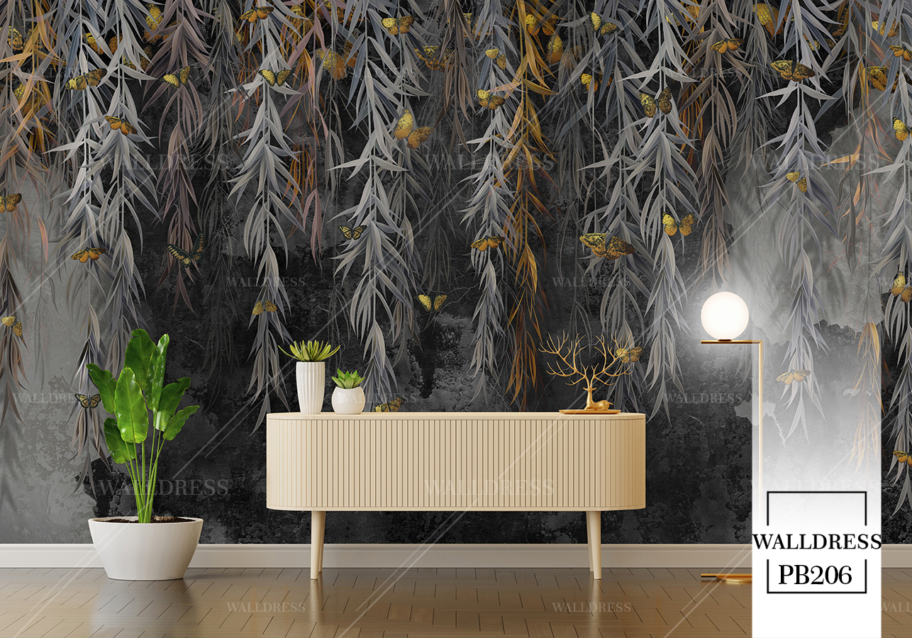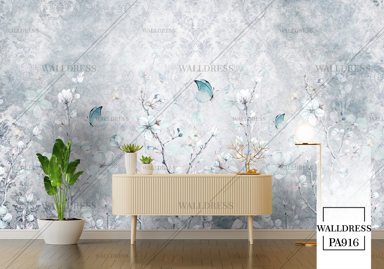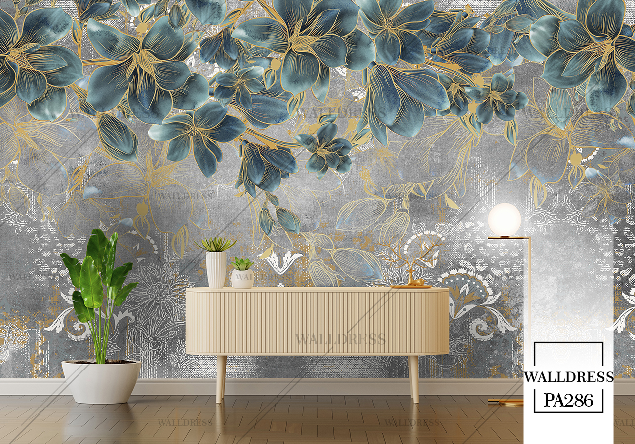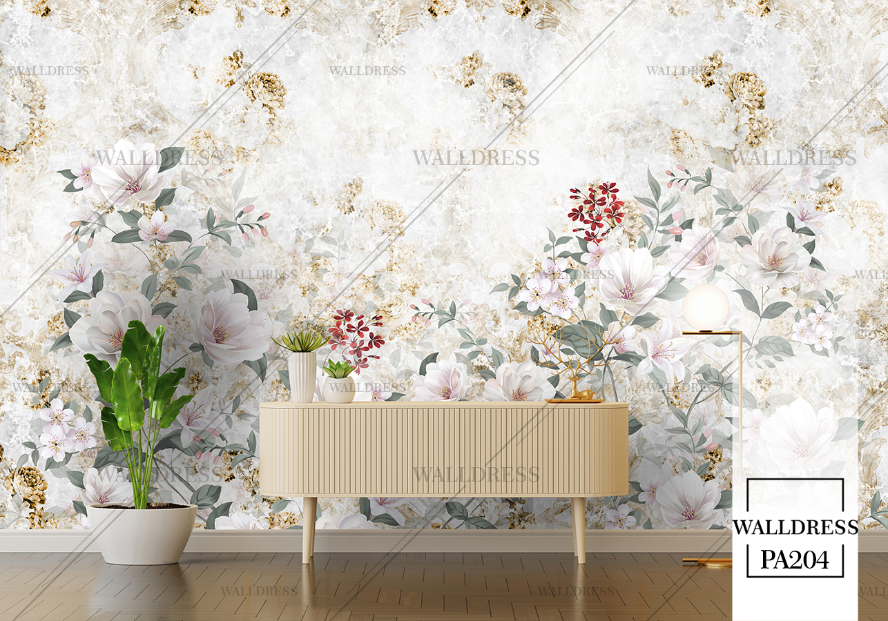 پوستر دیواری گلهای آبشاری طبیعی با طراحی از بالا به پایین با رنگهای ملایم و بافت ظریف مناسب دکوراسیون مدرن و کلاسیک