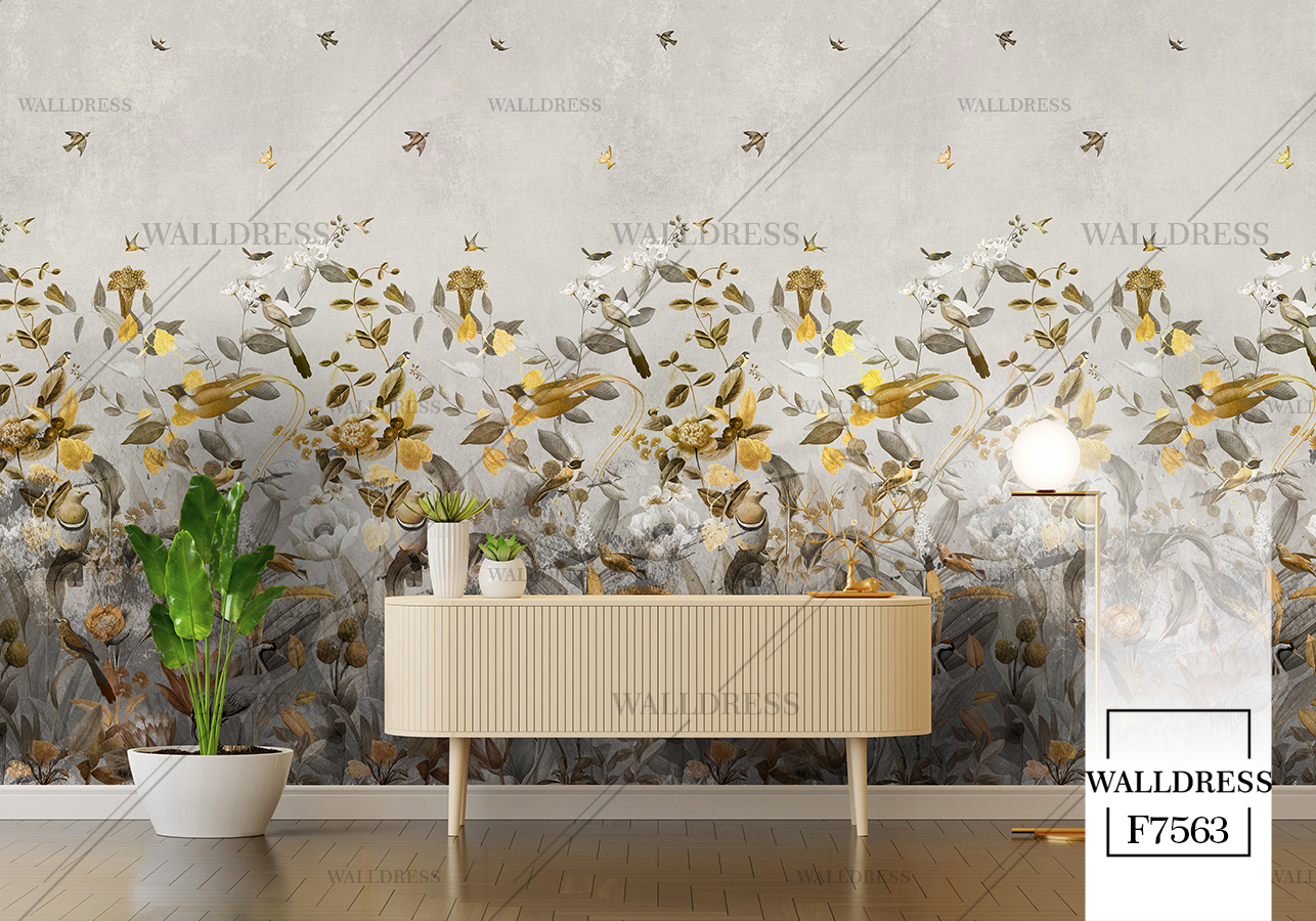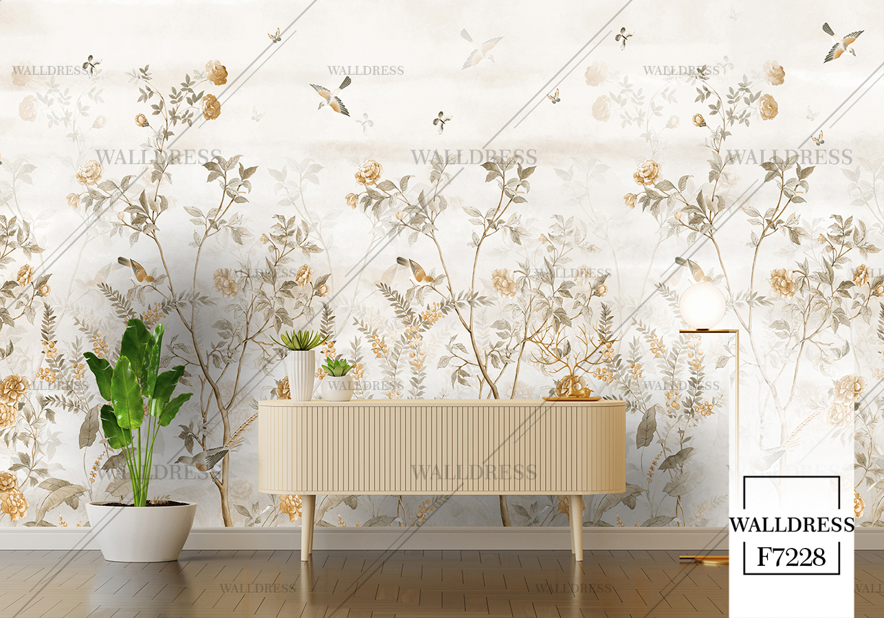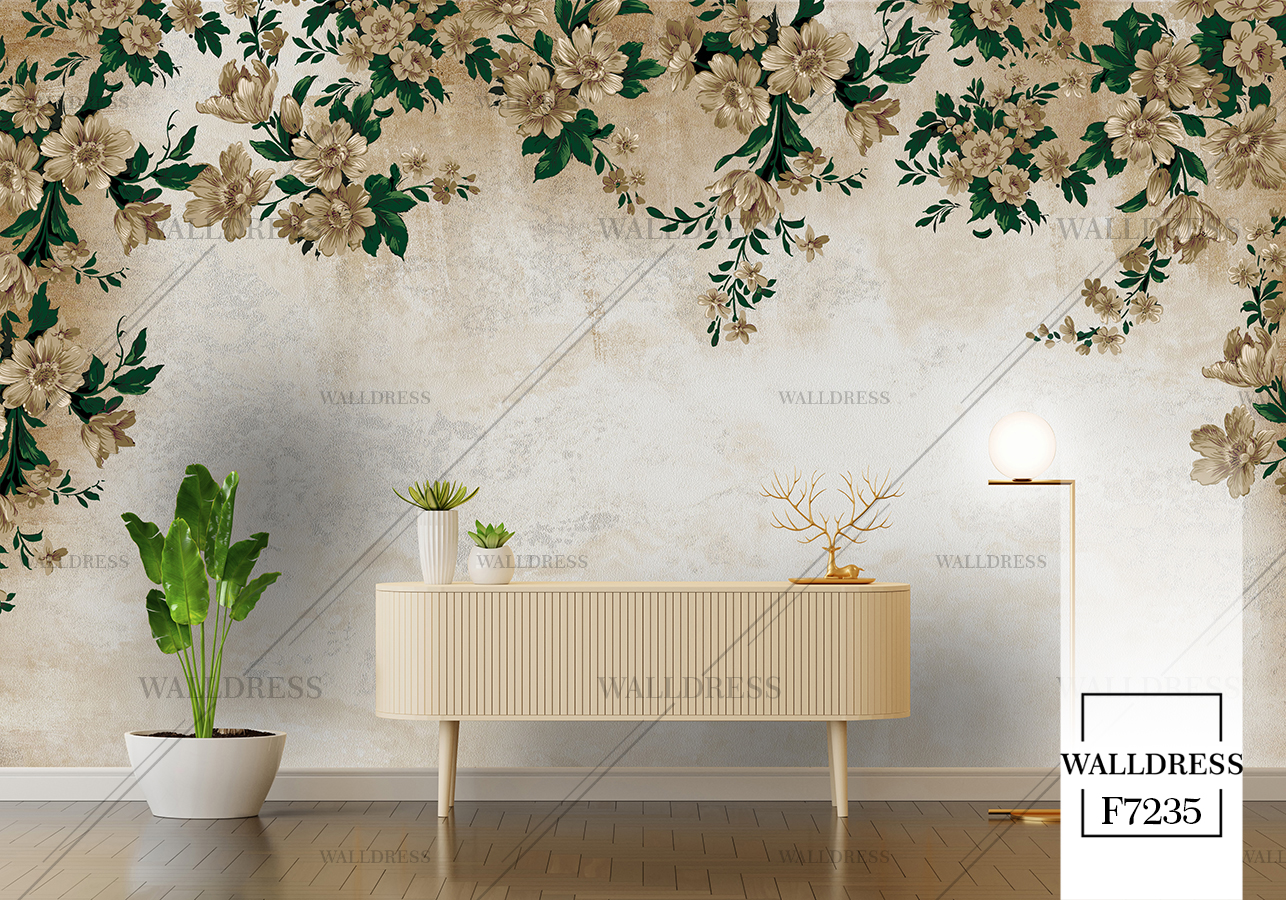 پوستر دیواری گلهای آبشاری طبیعی با طراحی از بالا به پایین با رنگهای ملایم و بافت ظریف مناسب دکوراسیون مدرن و کلاسیک | گندم